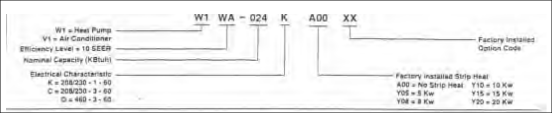 HP = Heat Pump W = Water Heat Recovery or Water Heat