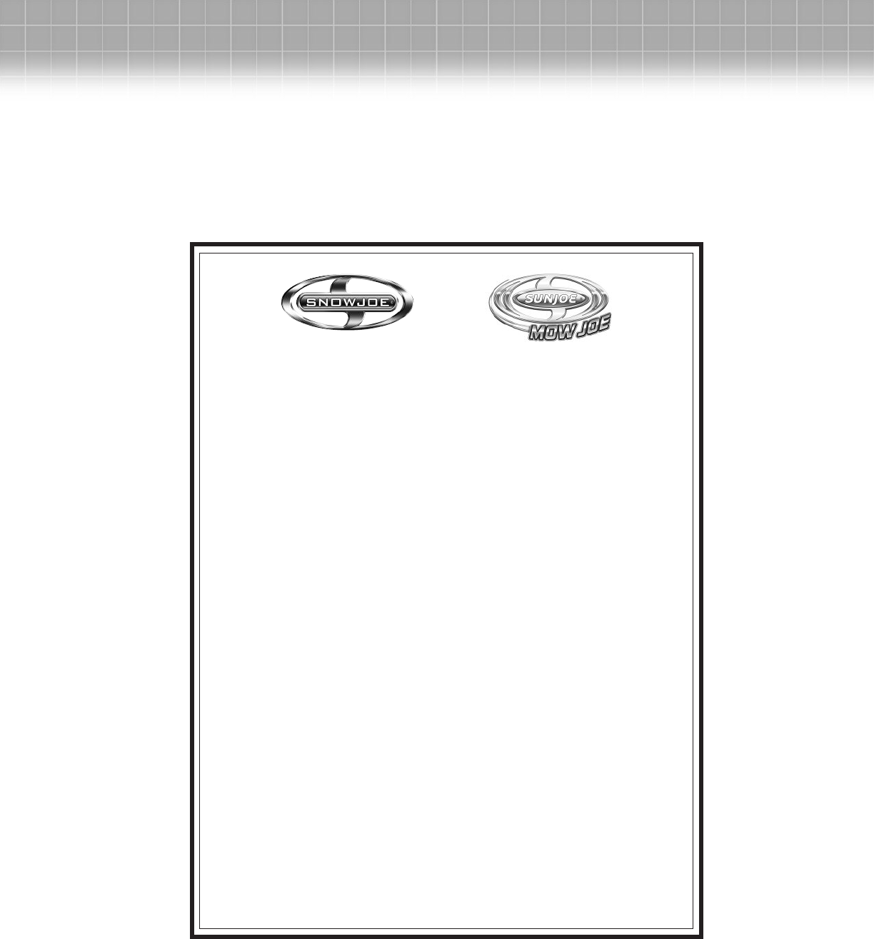 If you wish to contact Snow Joe,please direct inquiries to the: