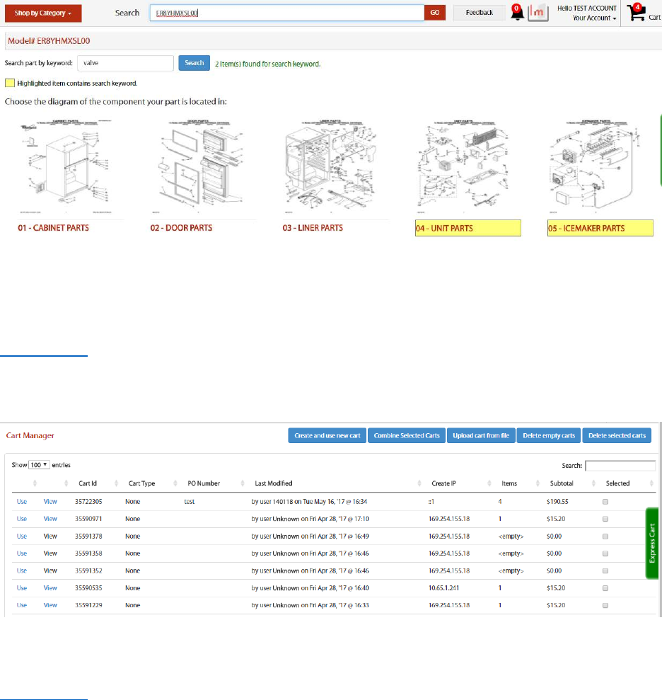 Cart manager can be accessed from the Order History menu. This allows the use of multiple carts. From