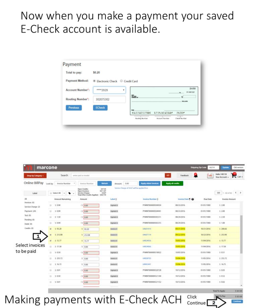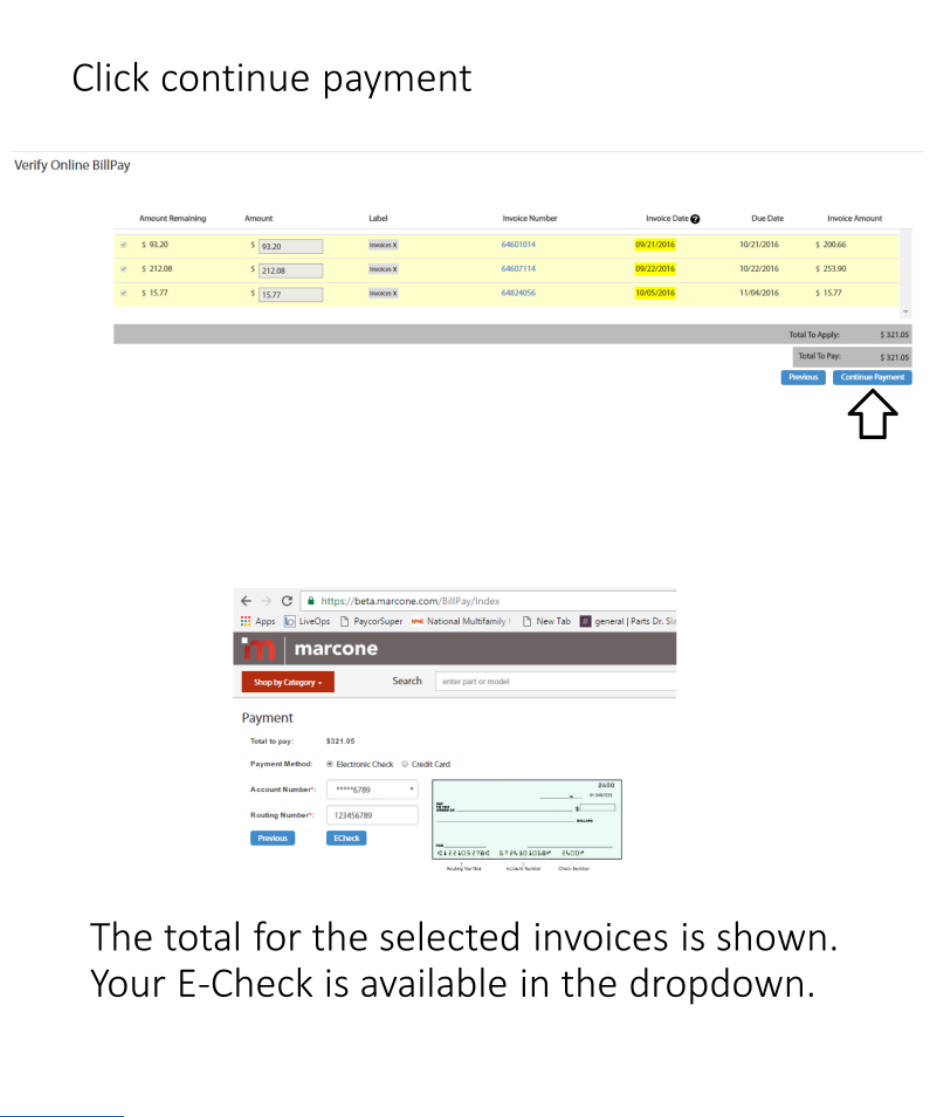 Bill pay allows individual invoices to be selected for payment. Or you can enter a payment amount and
