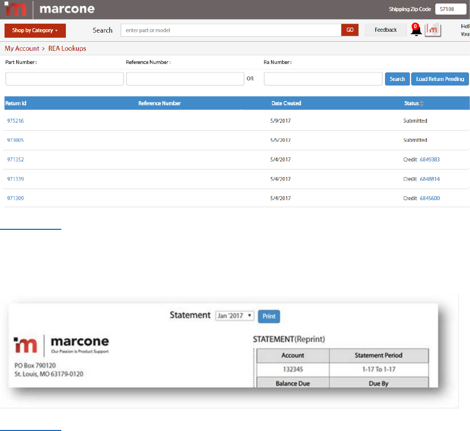 Use the REA lookup to check the status of an REA. When credit is issued it will the credit memo # here.