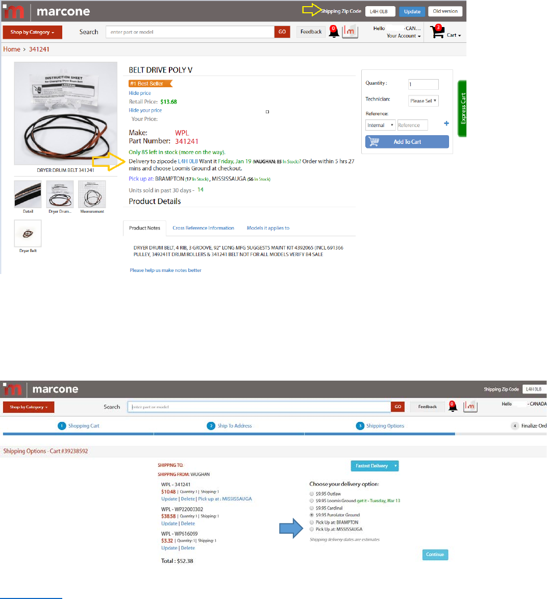 There are two spots on the parts detail page to enter a postal code for delivery ETA.