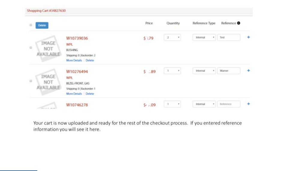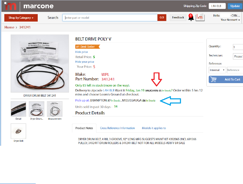 entering one part number, it will revert back to your postal code before you enter the next part number.