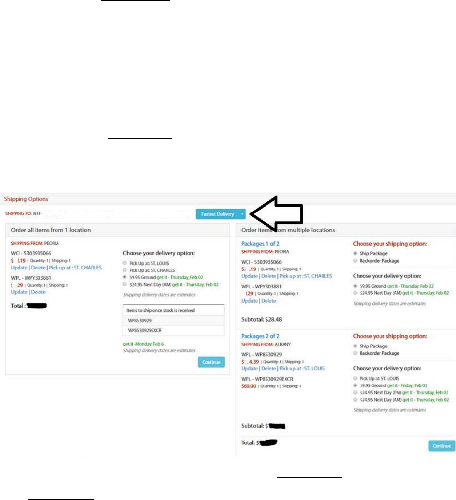 The system defaults to Fastest Delivery (system will get from the closest RDC, TNT time in transit)