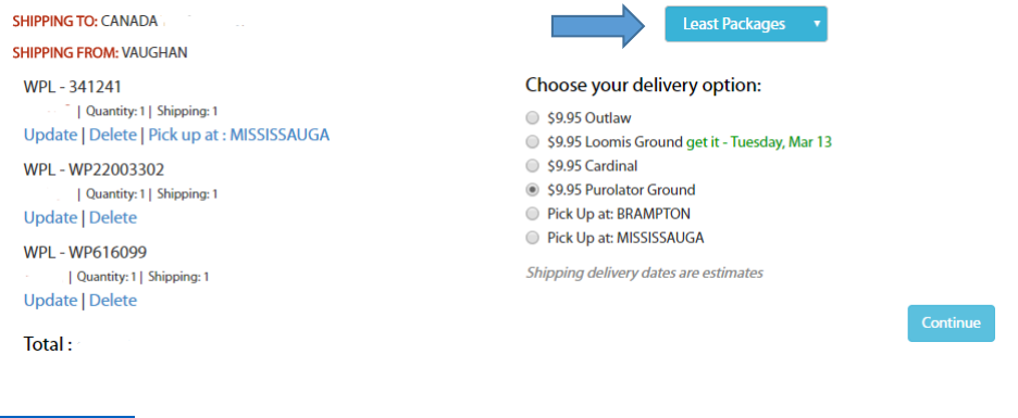 Click on Fastest Delivery and you will get a drop down that says Least Packages.