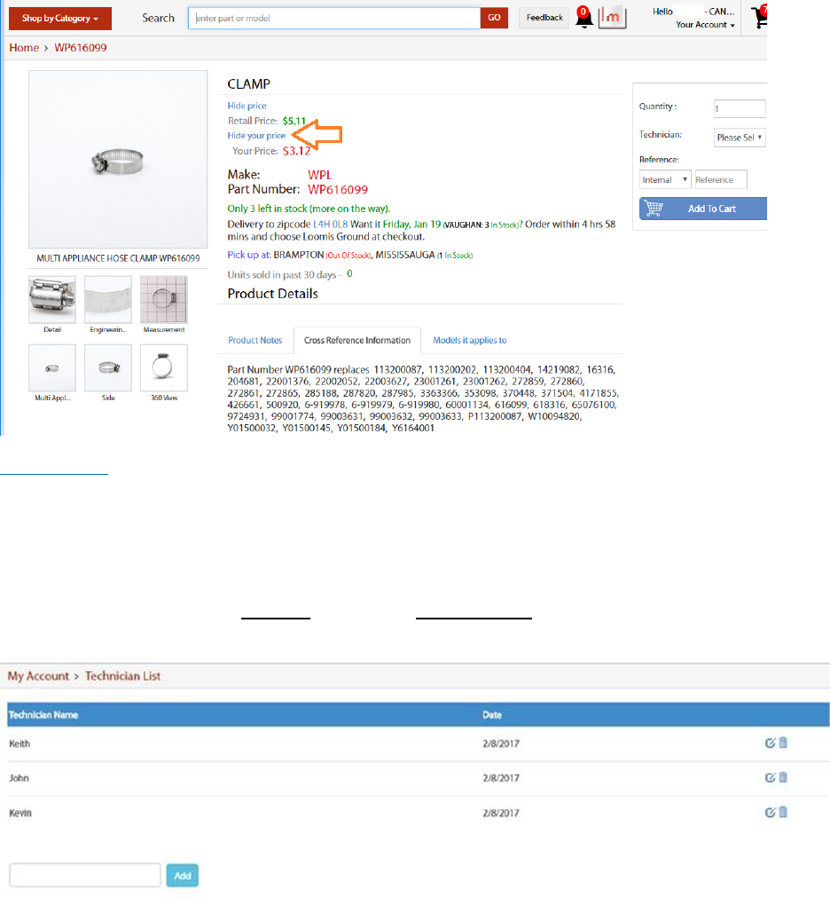 If you would like to show a customer a part but don’t want them to see your price, you can click ‘Hide
