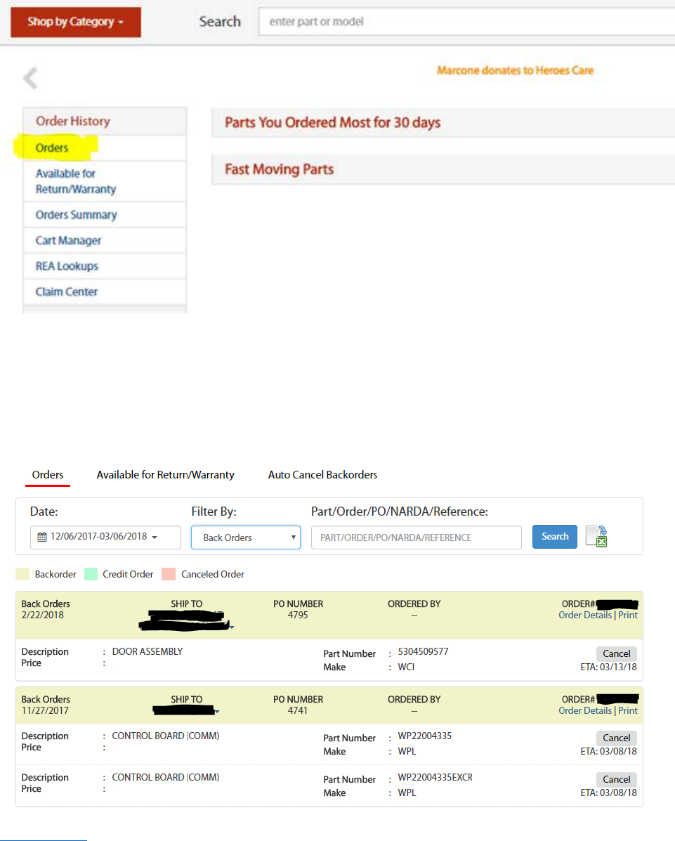 One is to let you do return of new parts and the other is to give you open invoices for when you do