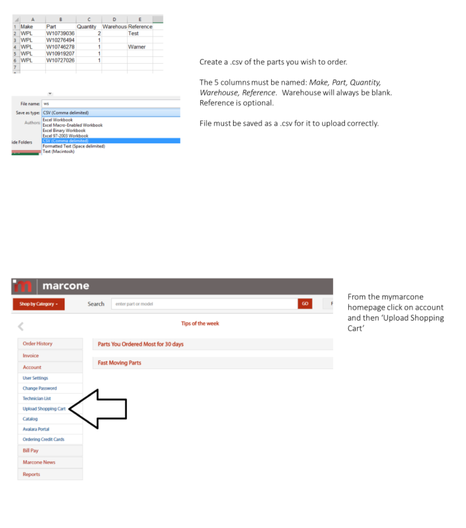 Uploading a shopping cart to MyMarcone............................................................................................ 13