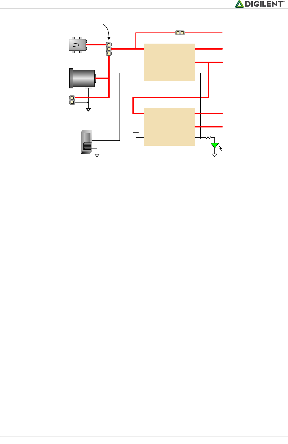 functions. The FPGA can be configured in one of four ways: a PC can use the Adept "USB Prog" port to program