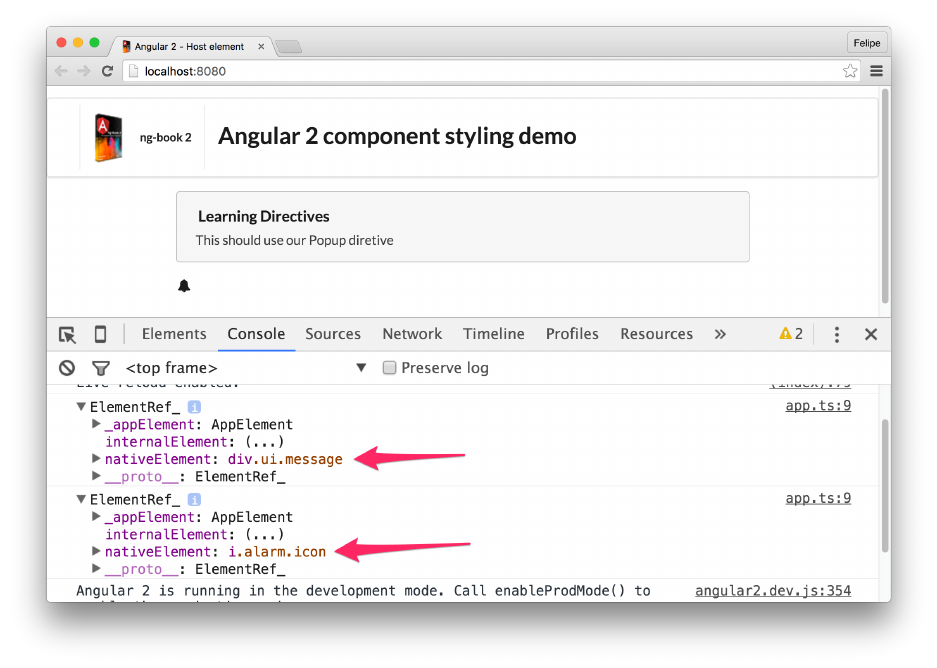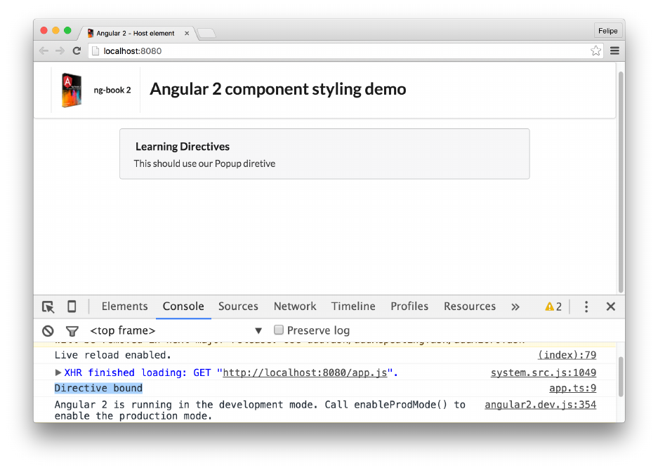 • Updated angular2.dev.js bundle to latest version for all examples