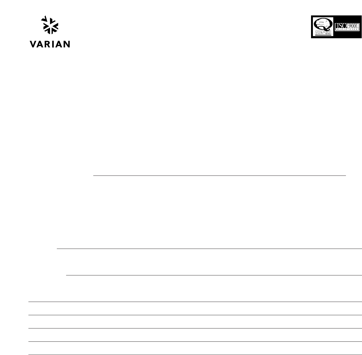 Varian Model No. _______________________ Serial No. __________________ Quantity ___________________