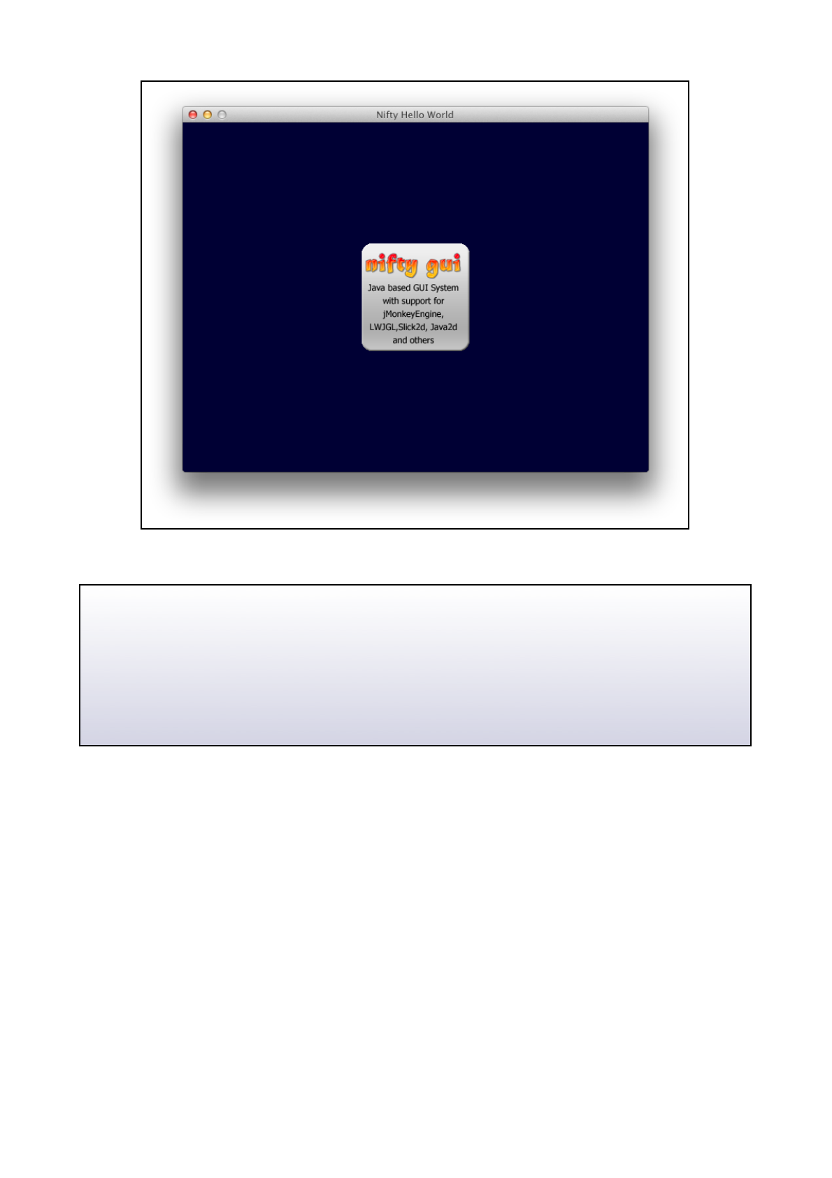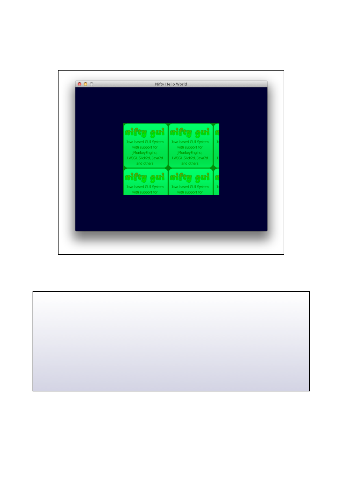 outside of Nifty GUI. The pure Nifty GUI classes are meant to display only the Nifty GUI on the