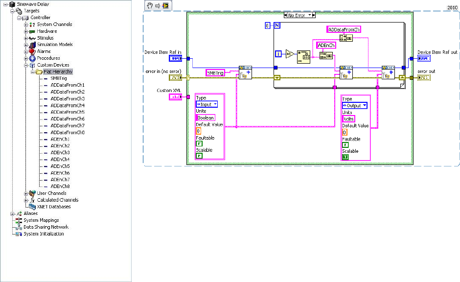 This goal of this process is to link the custom VIs to the NI VeriStand 2010 VIs and controls