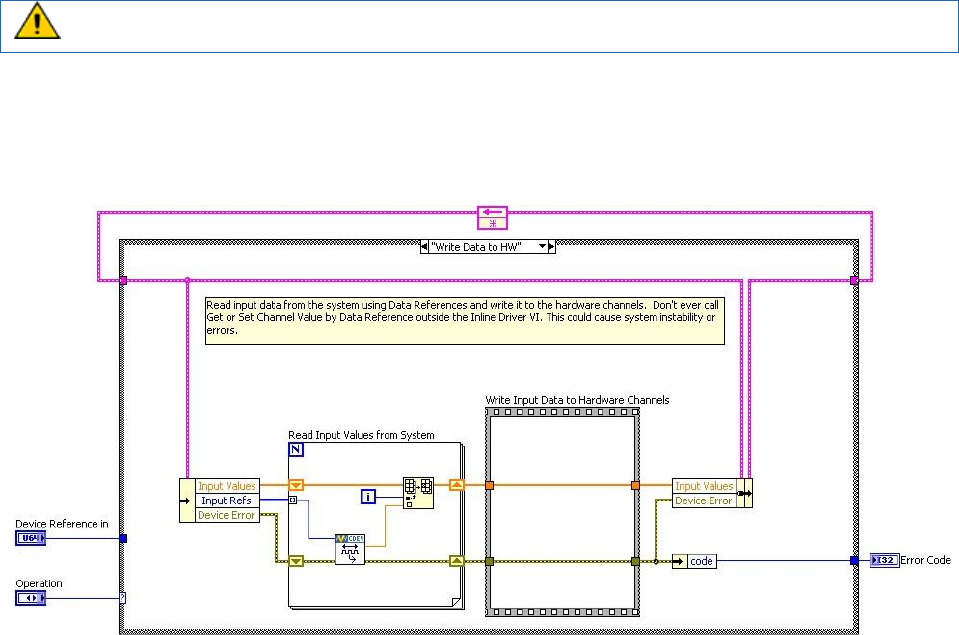 The inline device is responsible for communicating channel data to/from NI VeriStand, and the