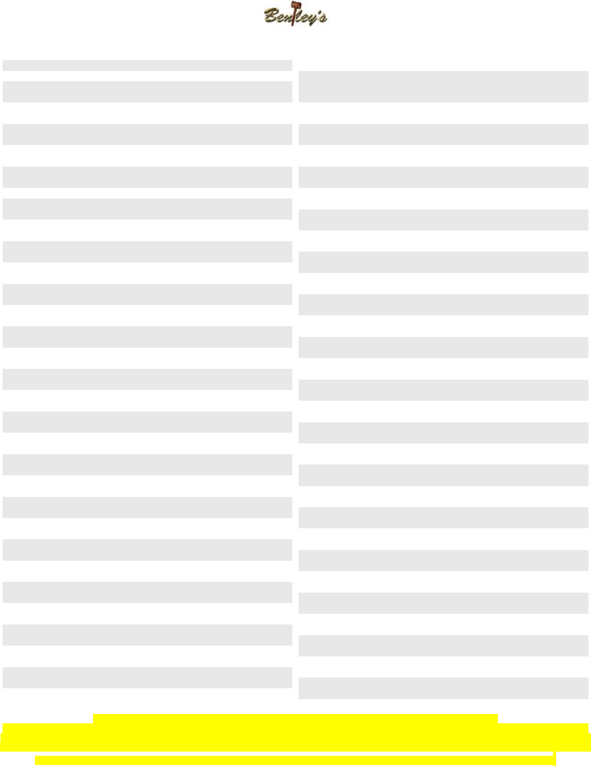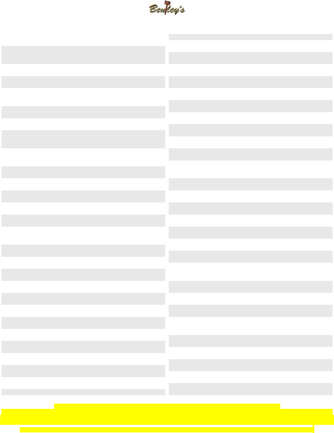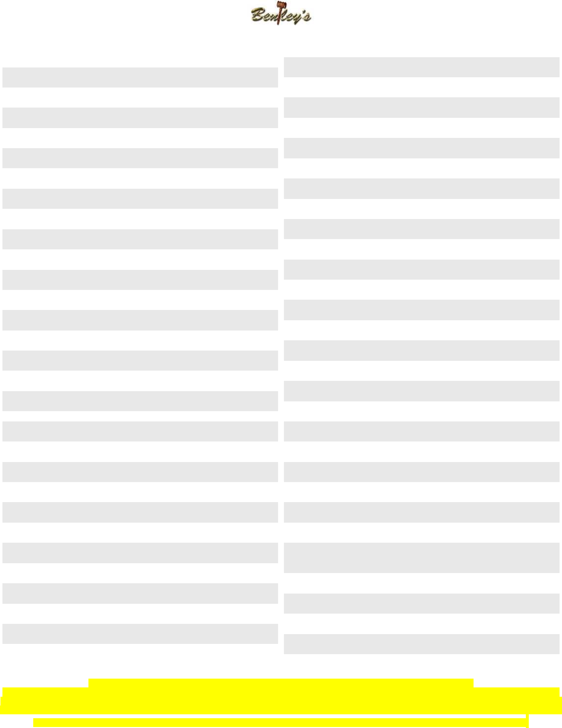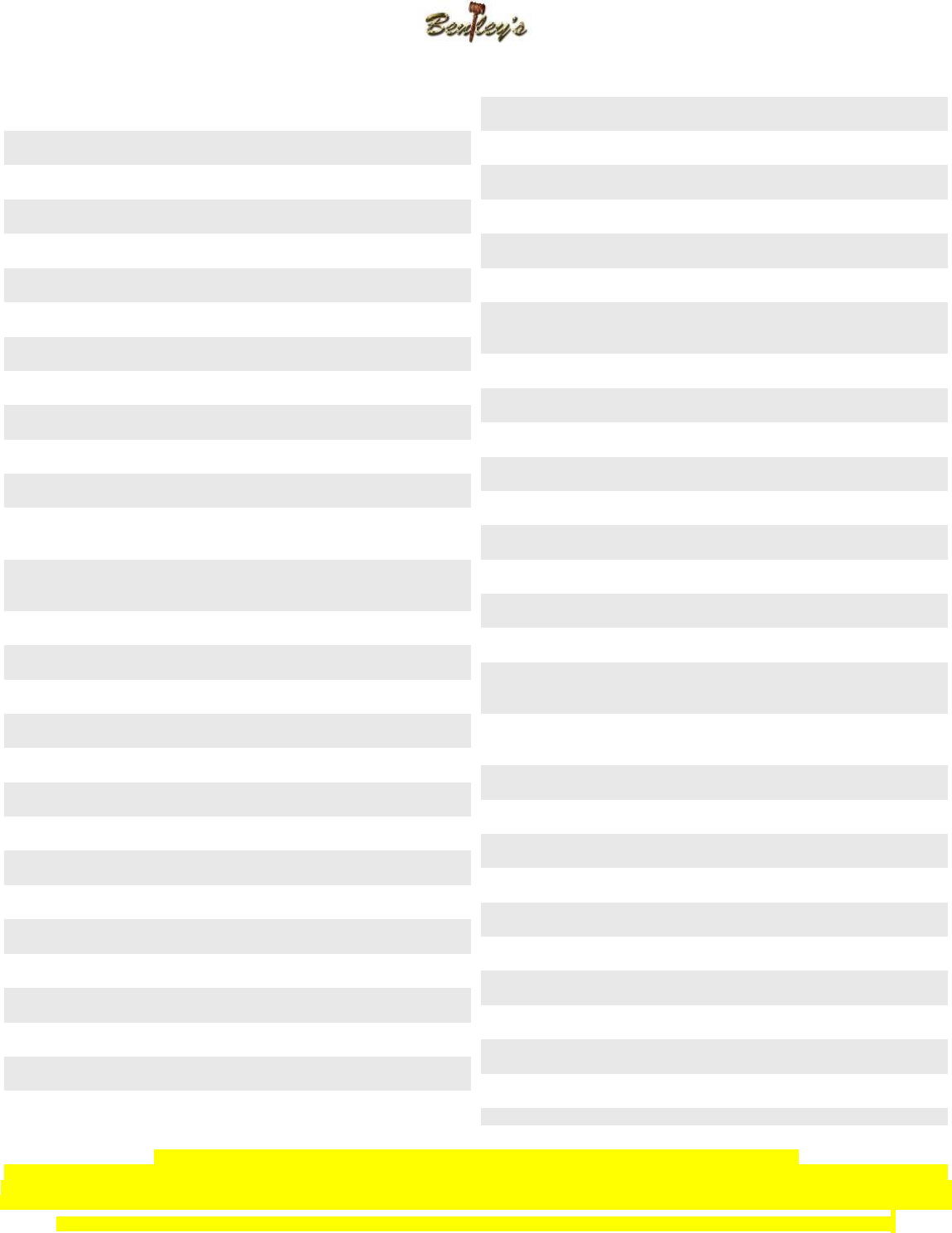 Bentley’s is not responsible for lost or stolen items!!!!!