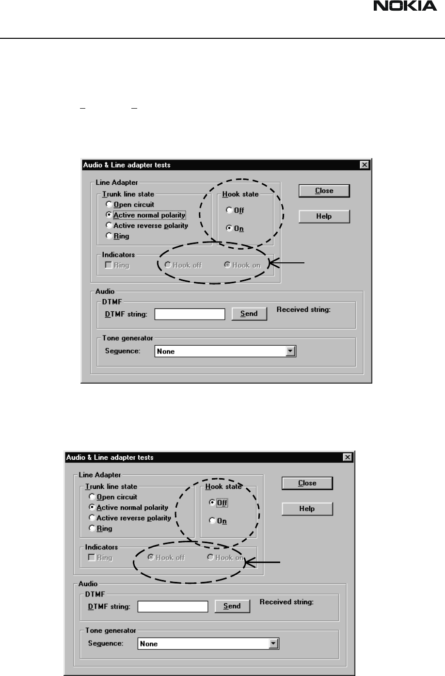 Check that the Hook off/on indicator state will change when you change the hook state.