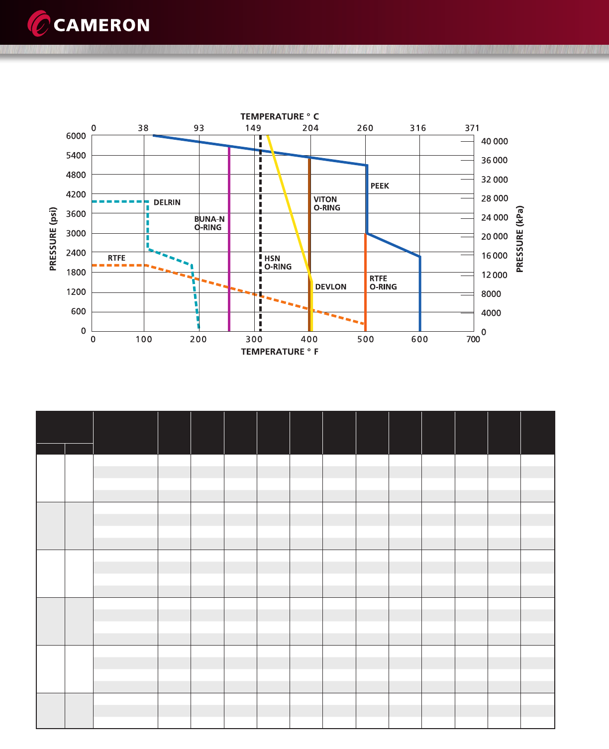 PRESSURE/TEMPERATURE RATINGS (SEATS AND SEALS)*