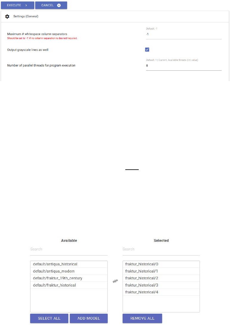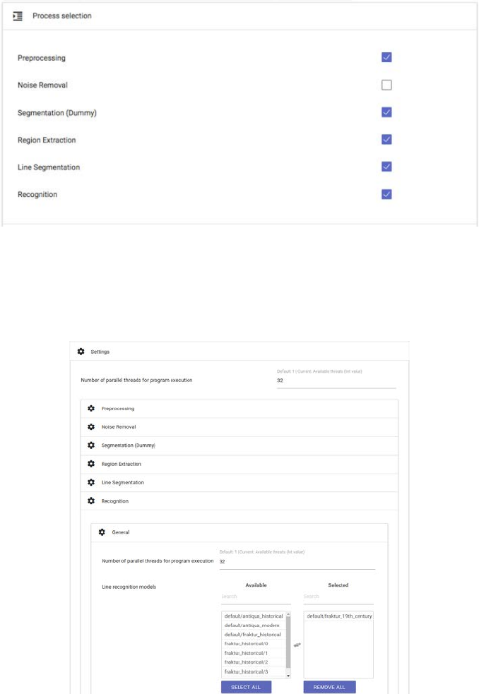 − Choose “default/fraktur_19th_century” as your OCR model (“Settings” → “Recogni-