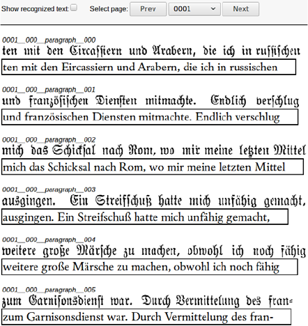 Output: final output as text (lines combined to pages and the entire book) and PageXML files