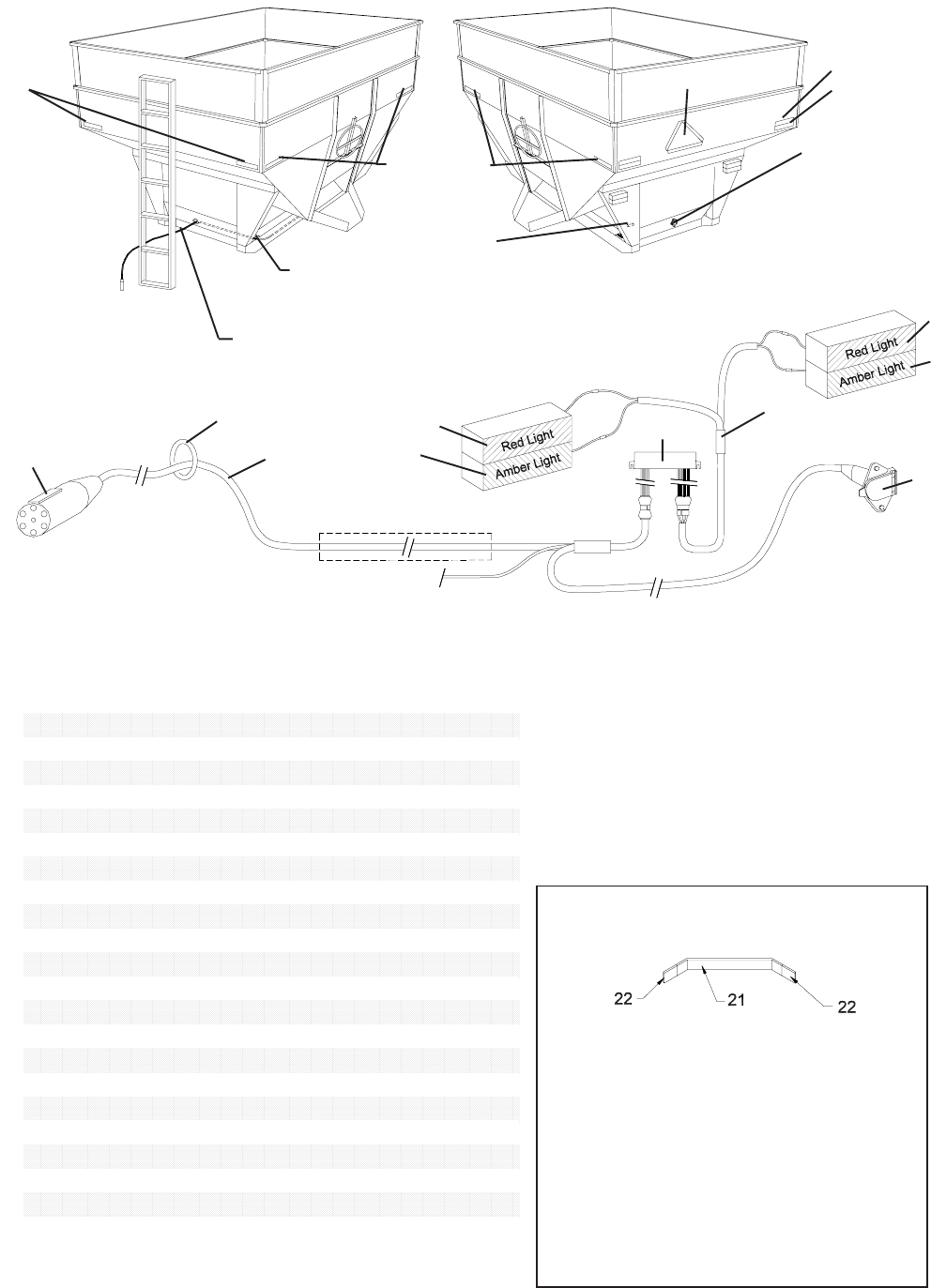 connect the opposite side red and amber lights, run the Light Wiring Harness along the gravity box bracing