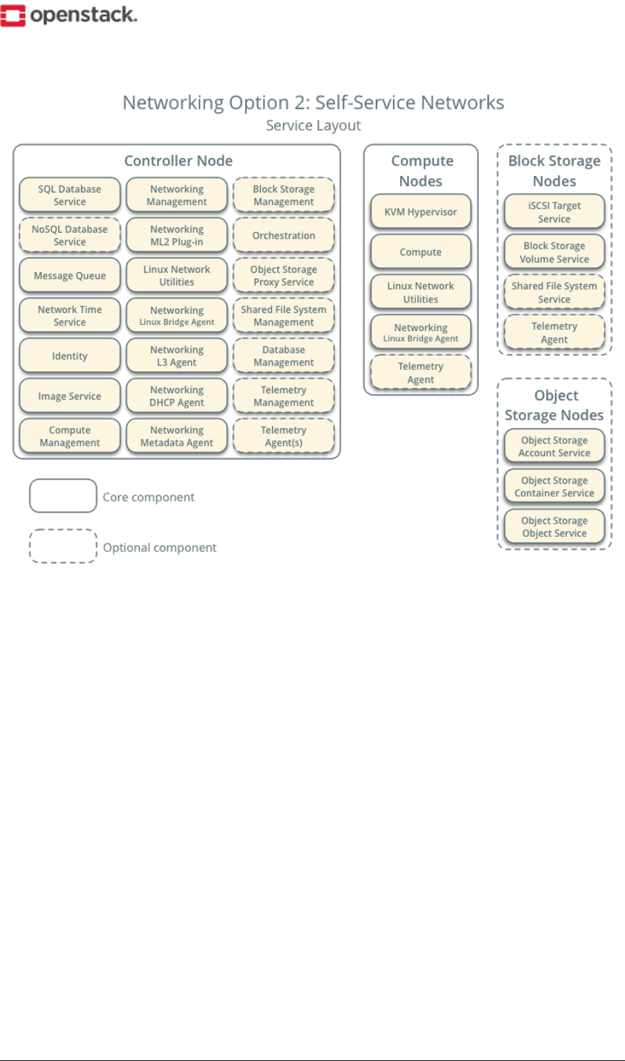 Optional services such as Block Storage and Object Storage require additional nodes.
