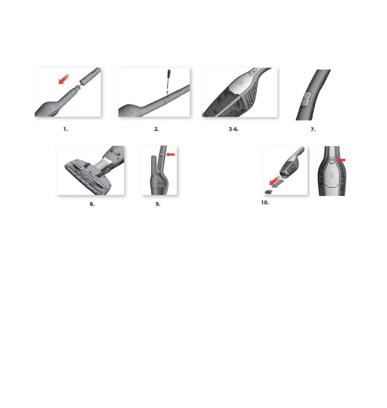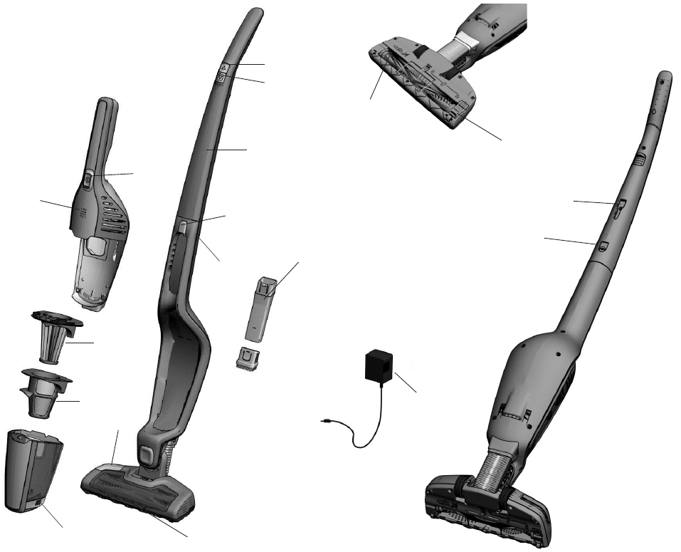 • Do not operate the vacuum cleaner or charger if it has been damaged in any way. If cleaner is not working as it should, has been