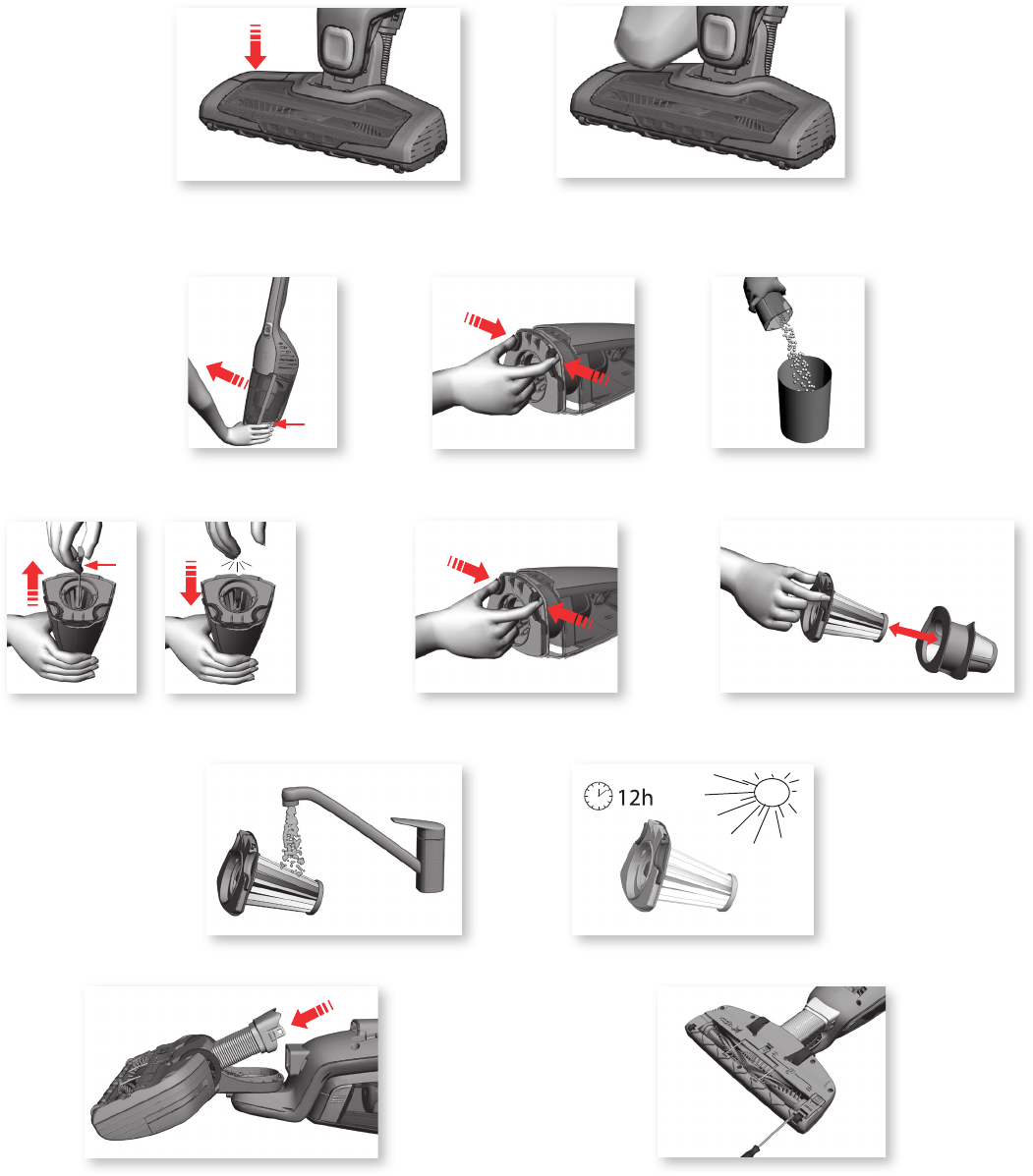 • Do not incinerate the vacuum cleaner even if it is severely damaged. The batteries can explode in a fire.