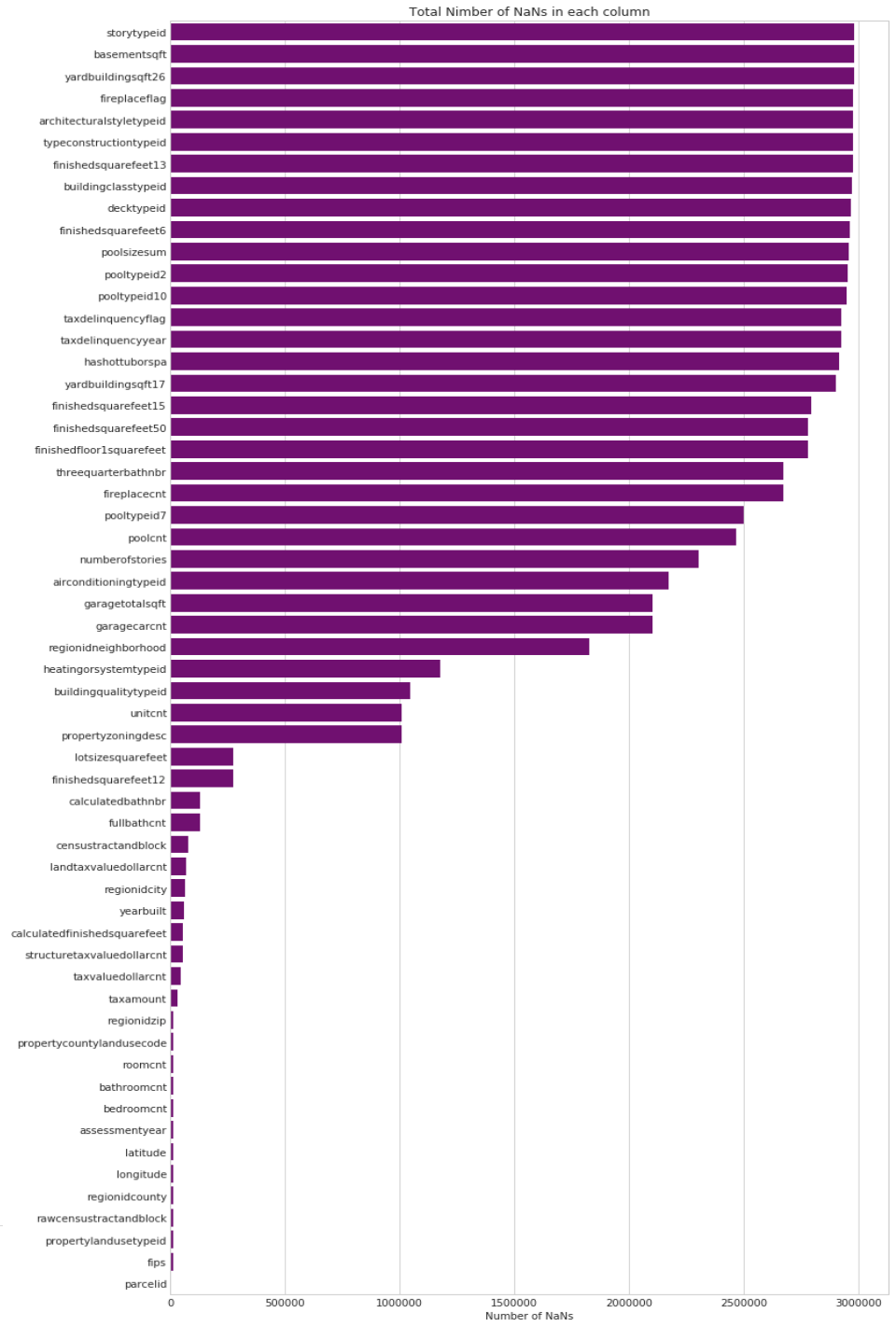 Plot # 1: Total Number of NaNs in each column