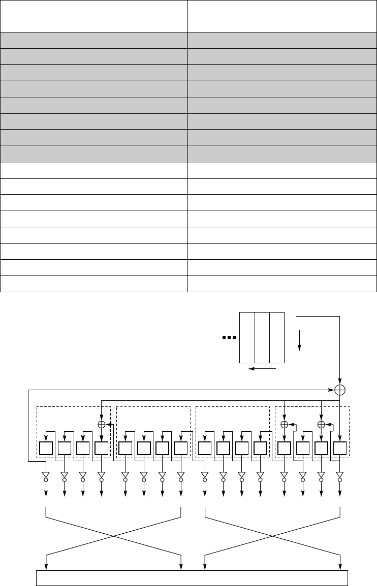 The initial 16 bit values of the LFSR for the first 128 LFSR advances following a reset are