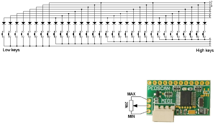 into MIDI. This board is most usable when no more than 32 keys are needed, like
