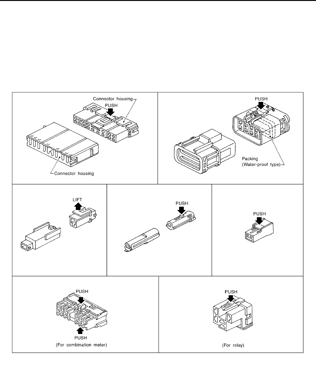 ●The tab-locking type connectors are disconnected by pushing or lifting the locking tab(s). Refer to the