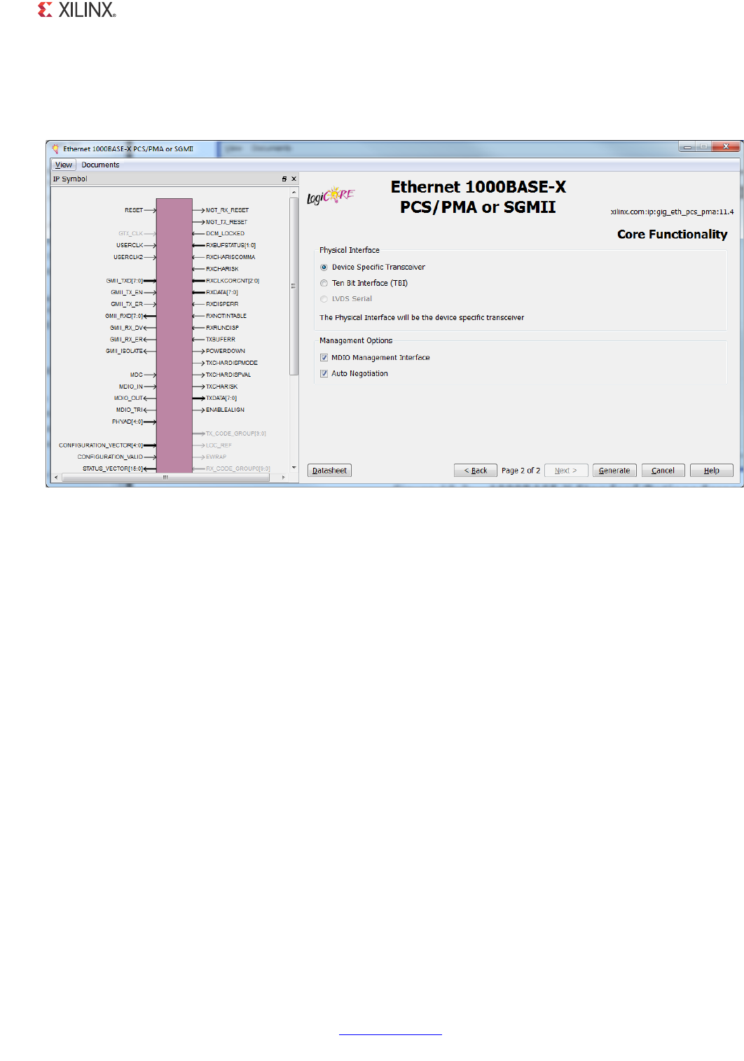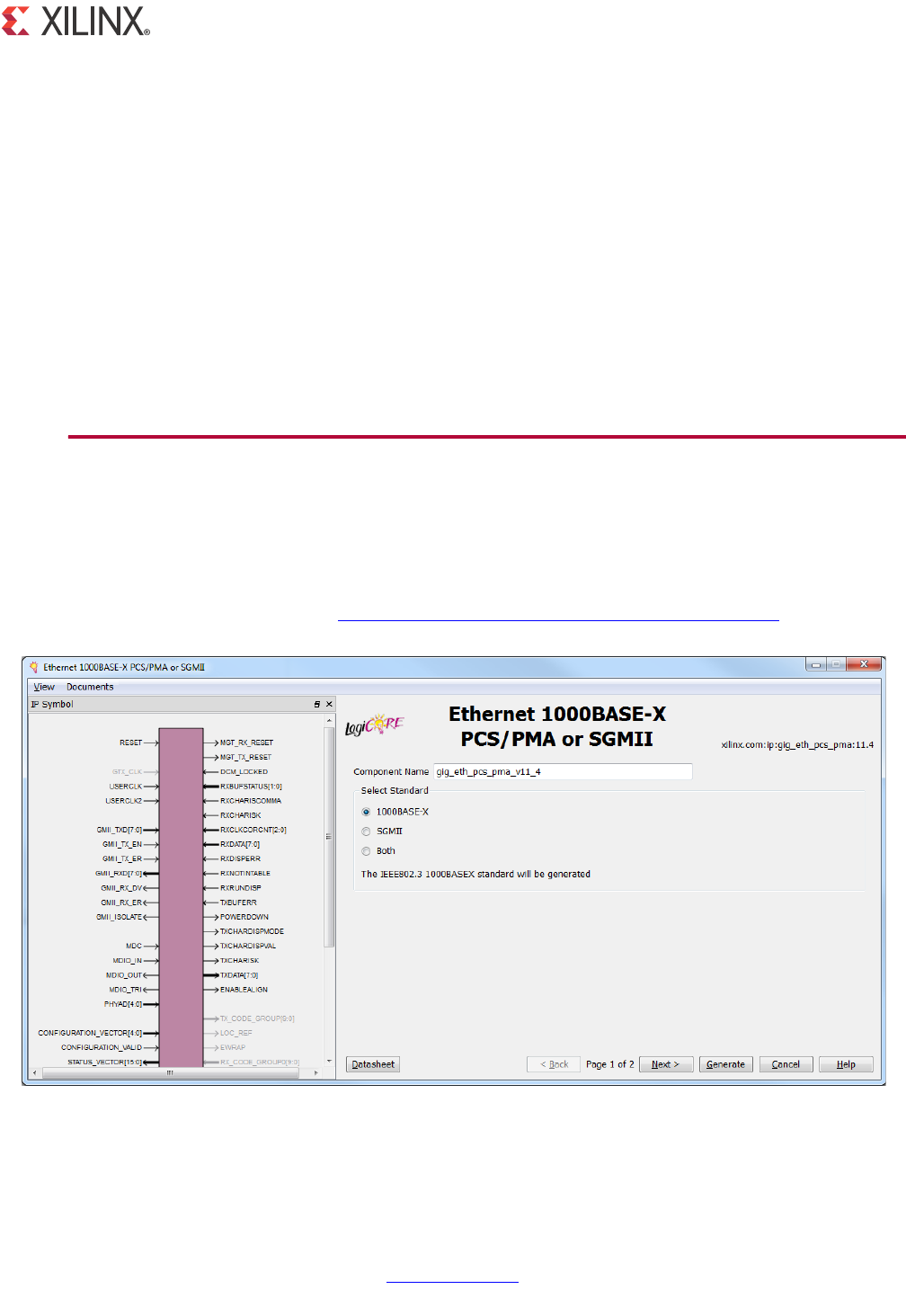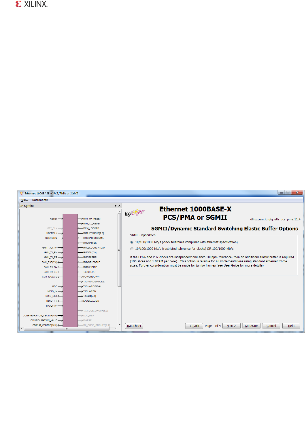 • LogiCORE IP Ethernet 1000BASE-X PCS/PMA or SGMII v11.3 Product Guide