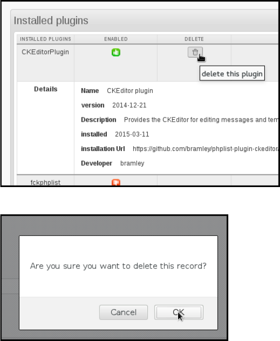 A green thumbs up icon indicates that the plugin is enabled (on) and