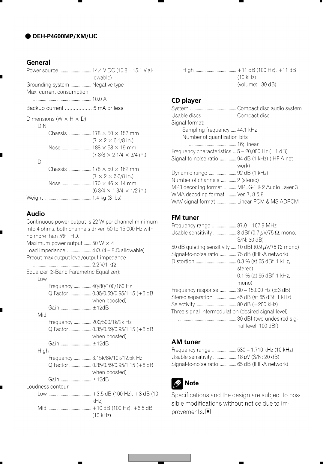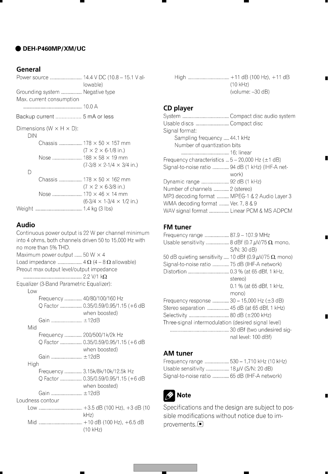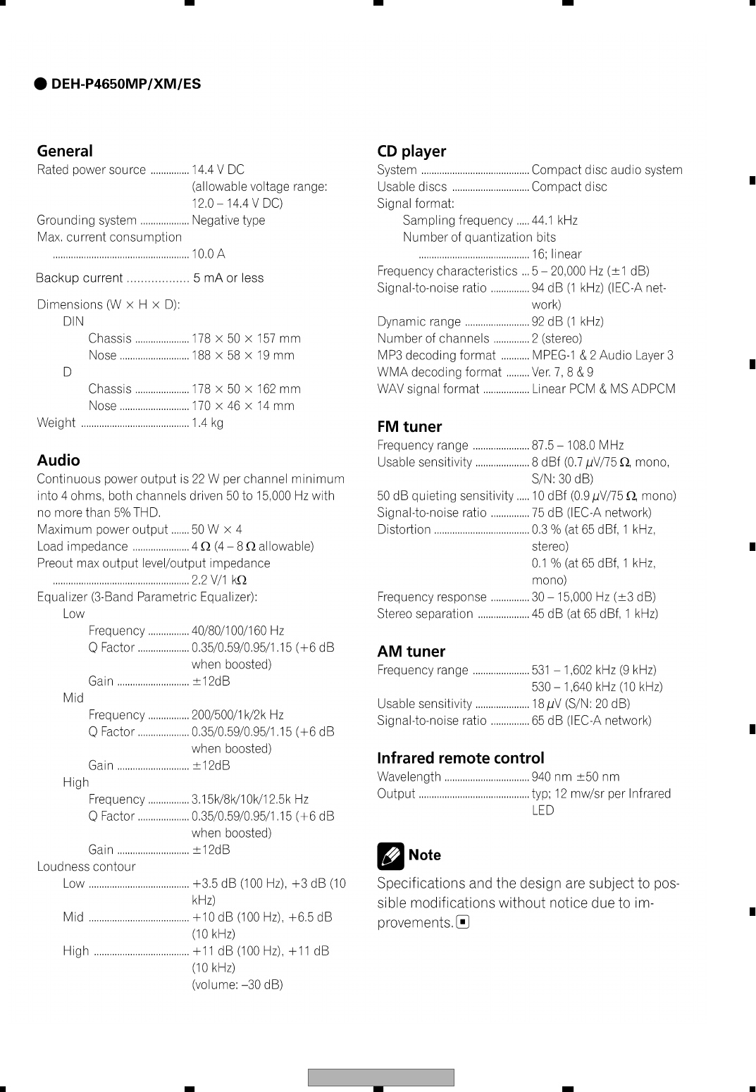 User Manual: Pioneer DEH-P4600MP - Service manuals and Schematics. Free.