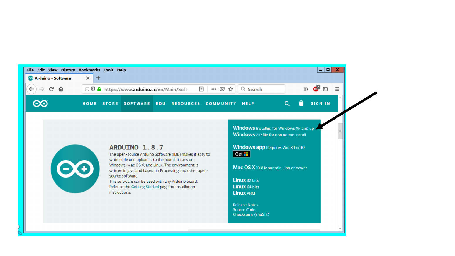 •Scroll down to the "Install the Arduino Desktop IDE" section