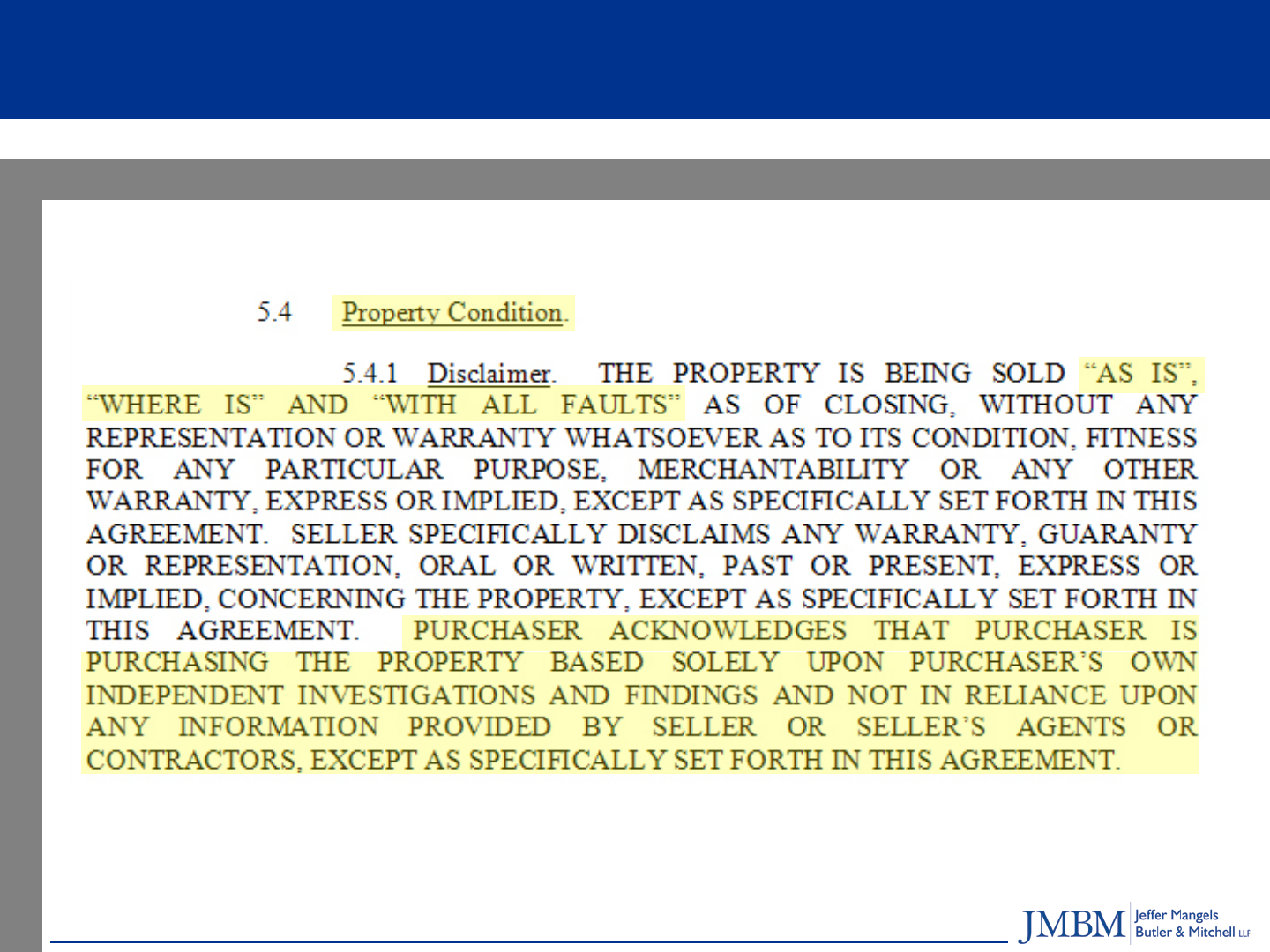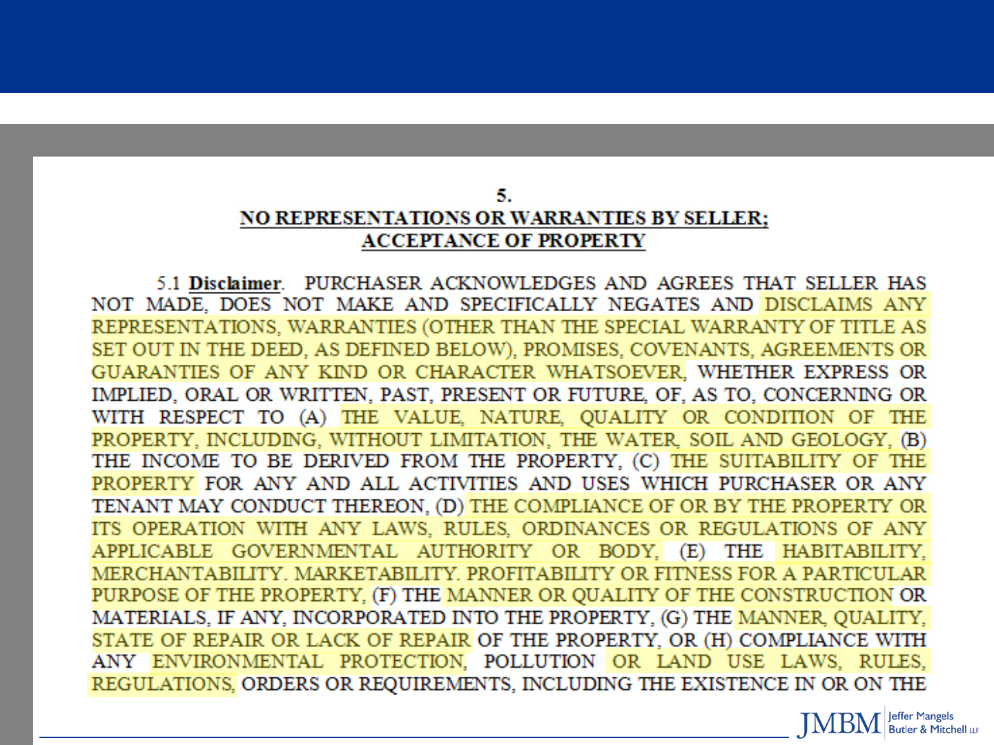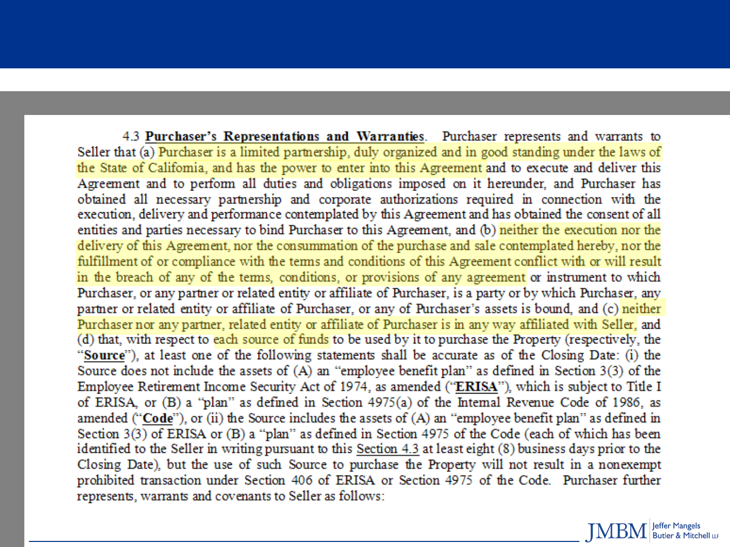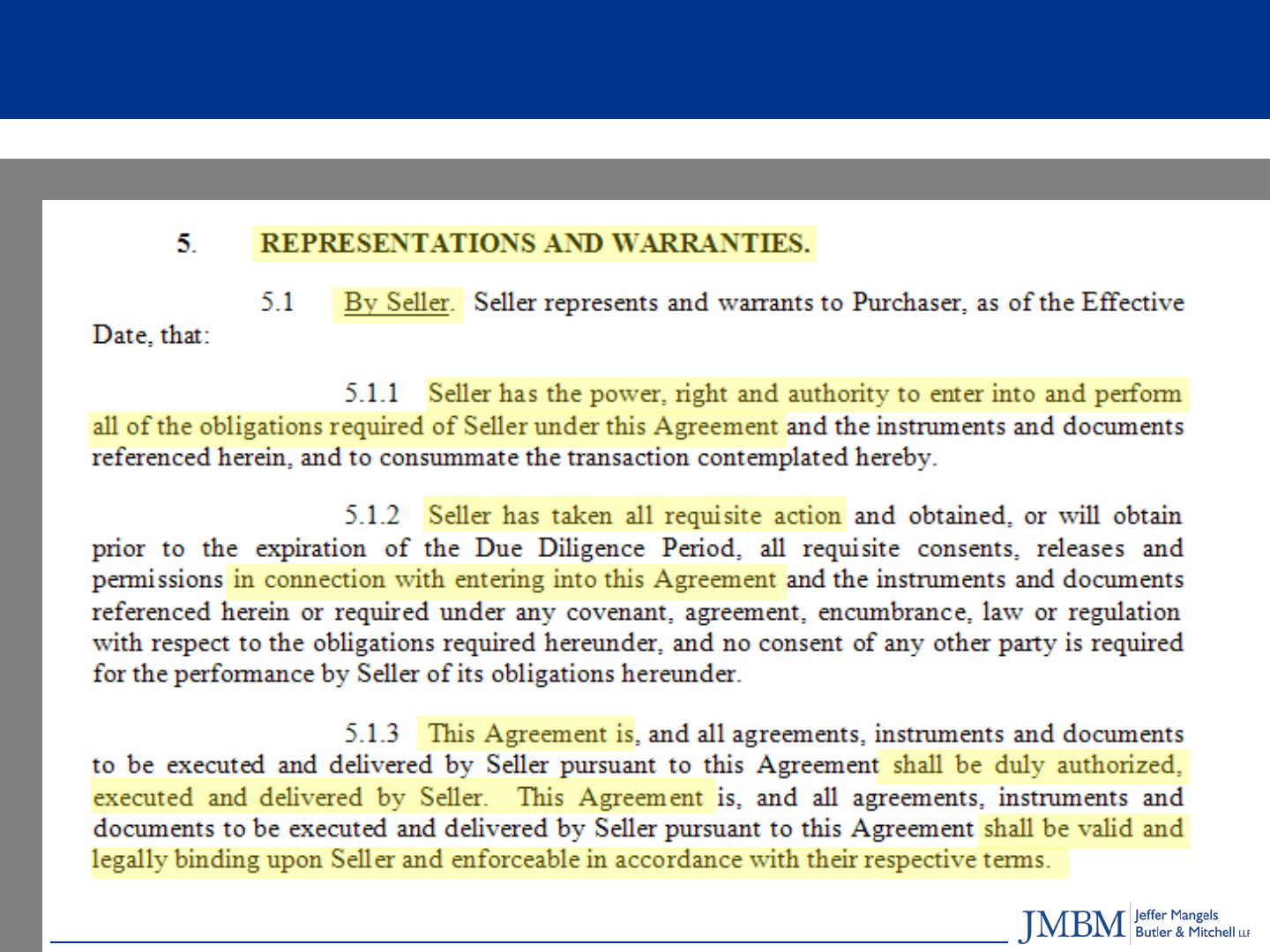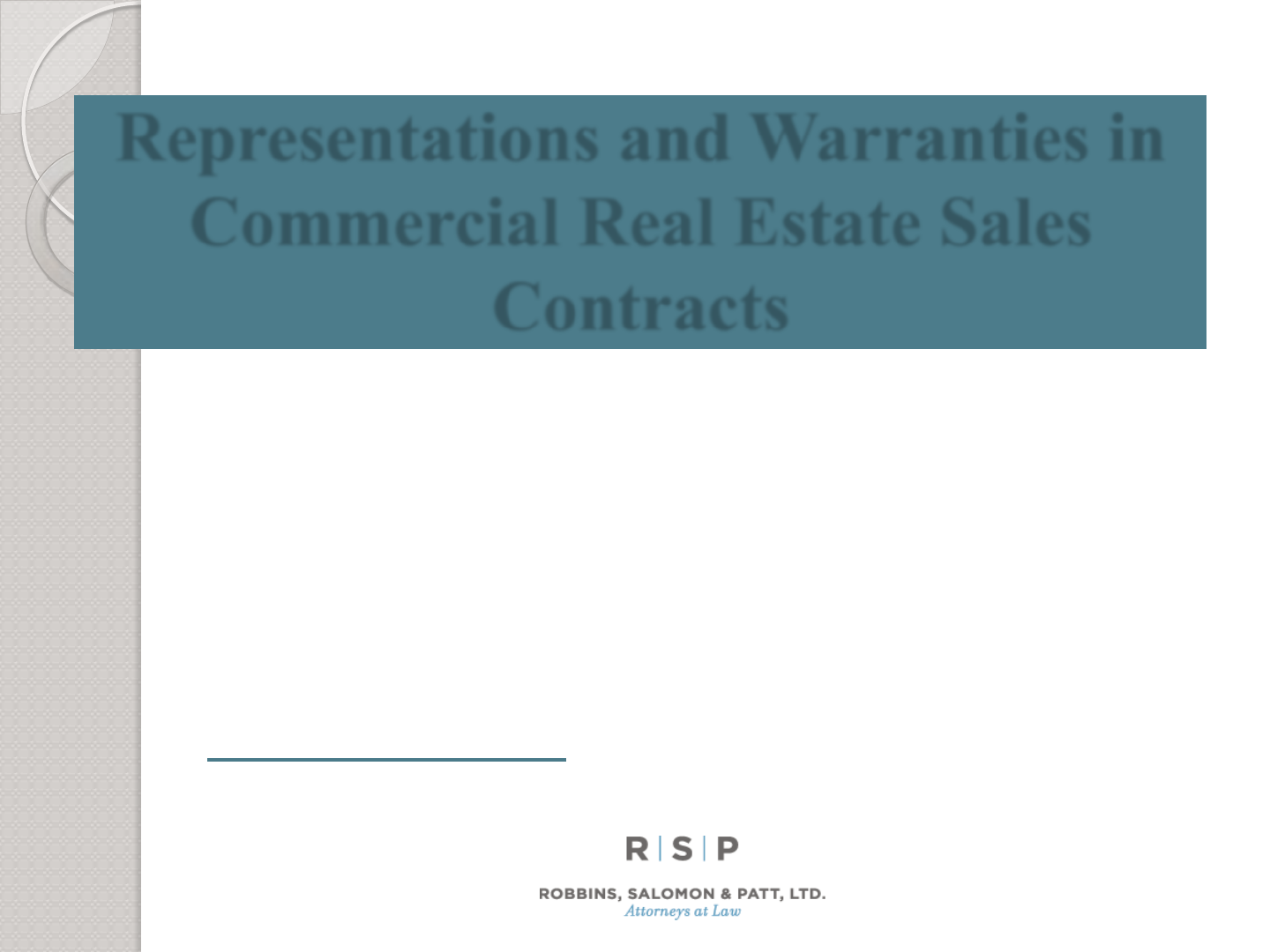- Representations and Warranties in Commercial Real Estate Sales Contracts