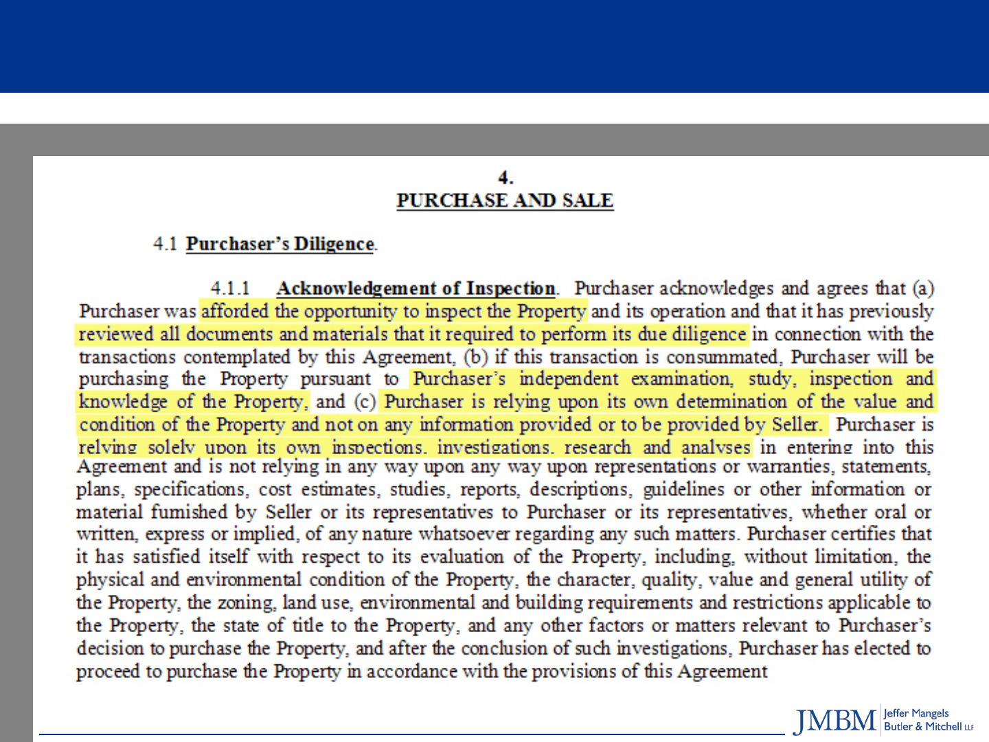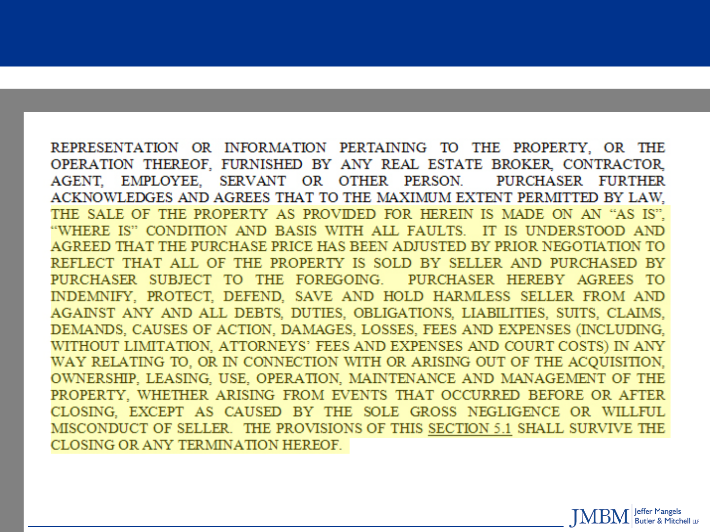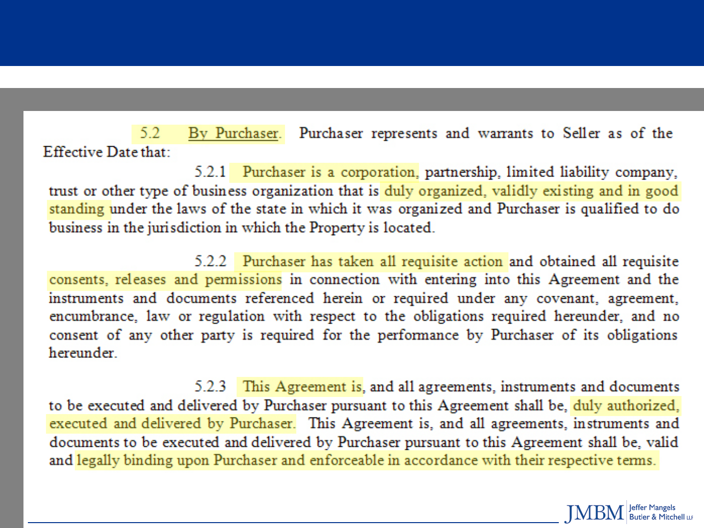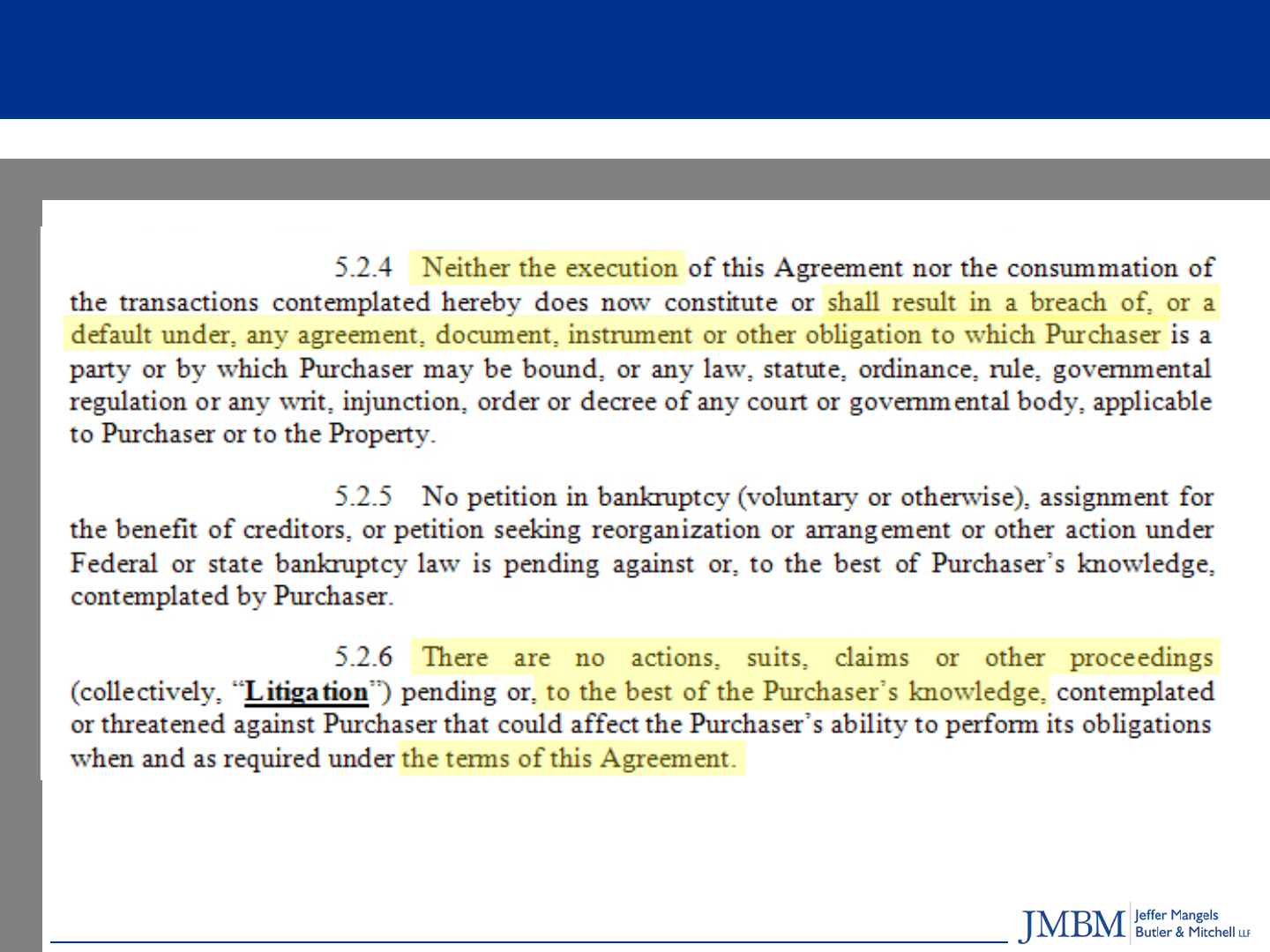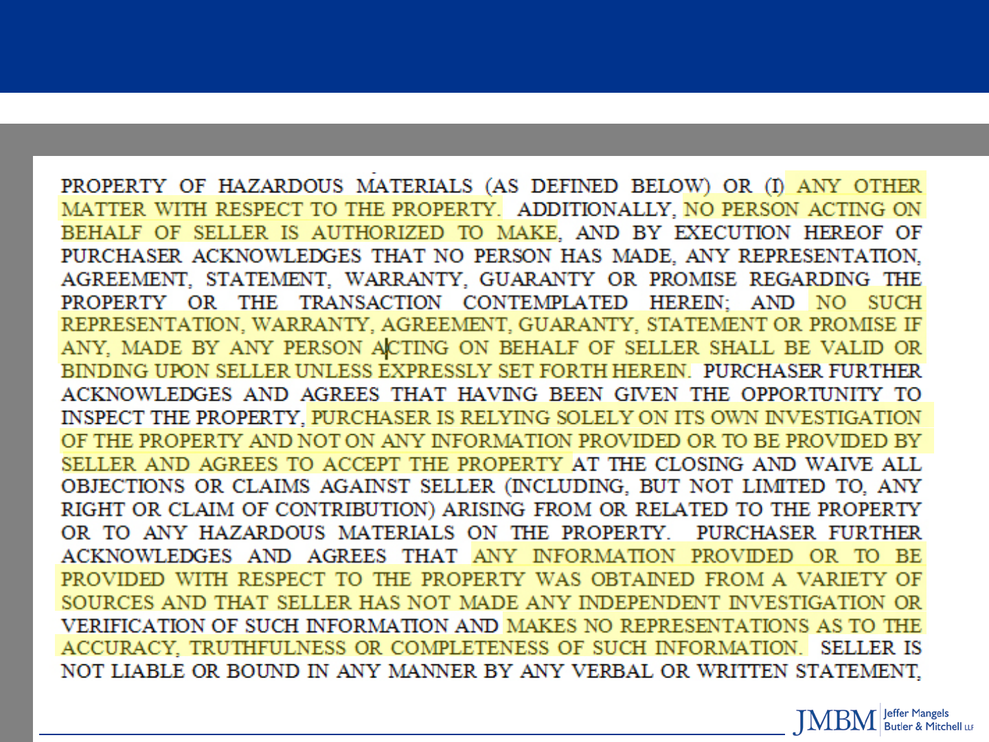 - Representations and Warranties in Commercial Real Estate Sales Contracts