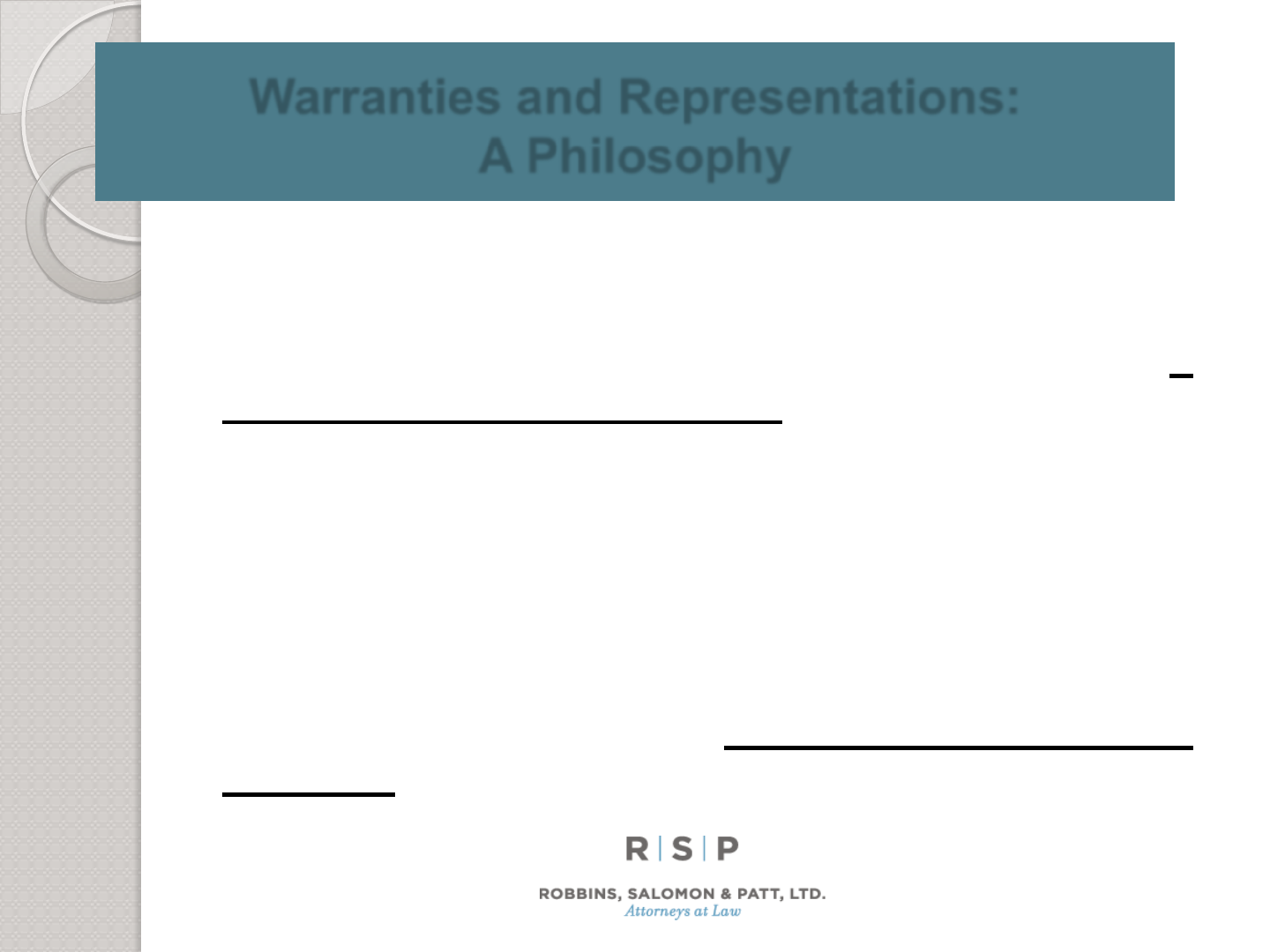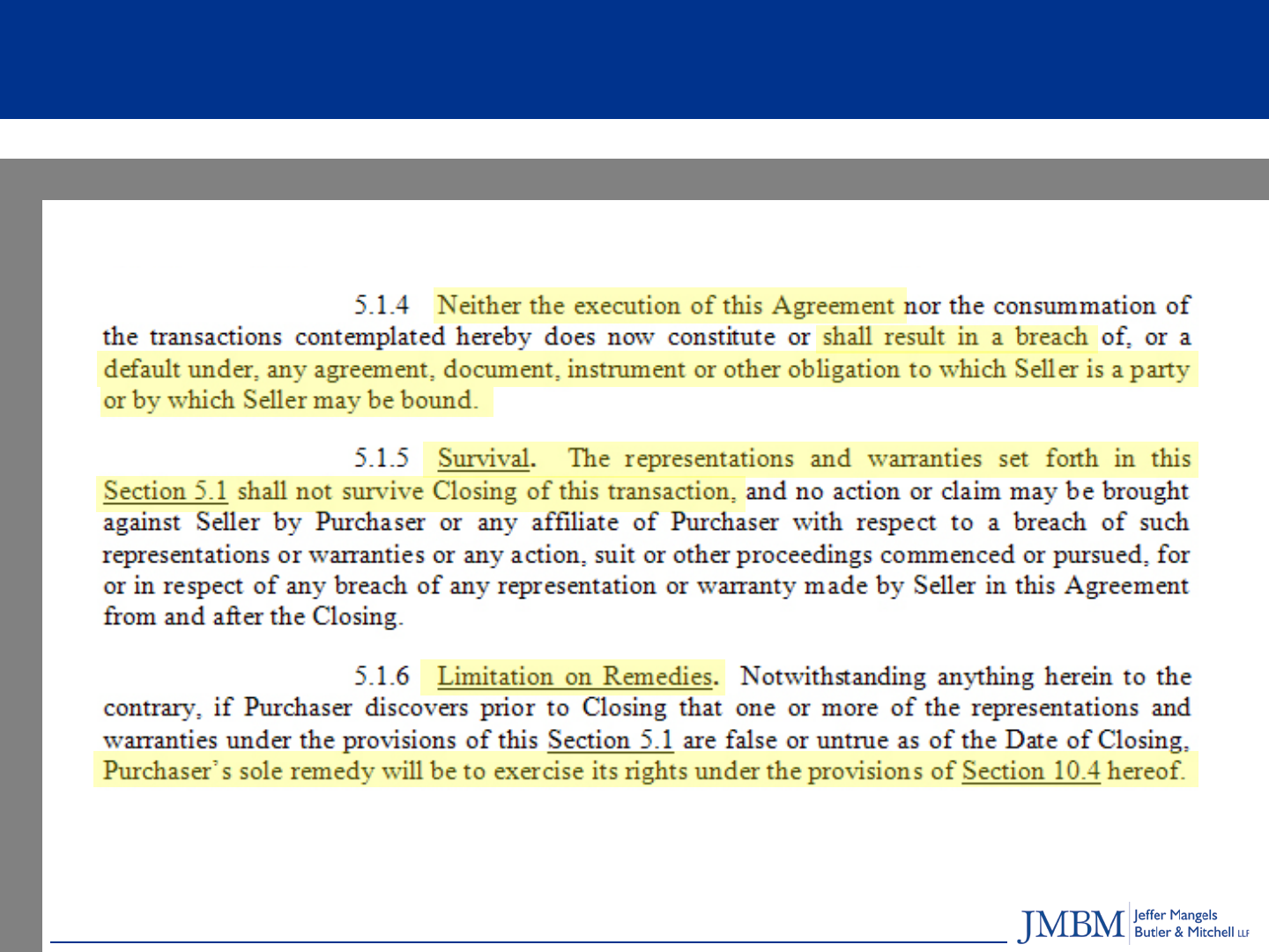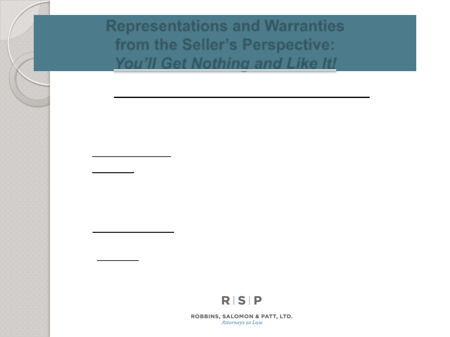 - Representations and Warranties from the Seller’s Perspective: You’ll Get Nothing and Like It!