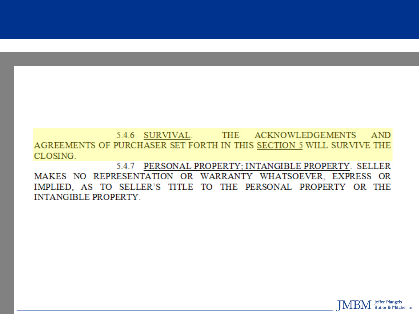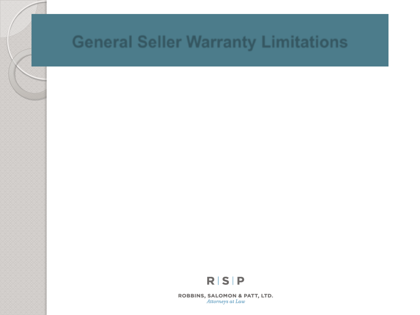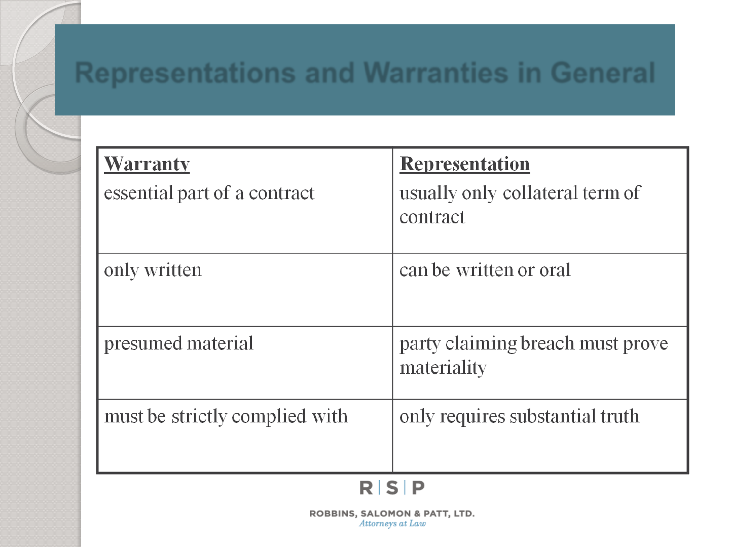 - Representations and Warranties from the Seller’s Perspective: You’ll Get Nothing and Like It!