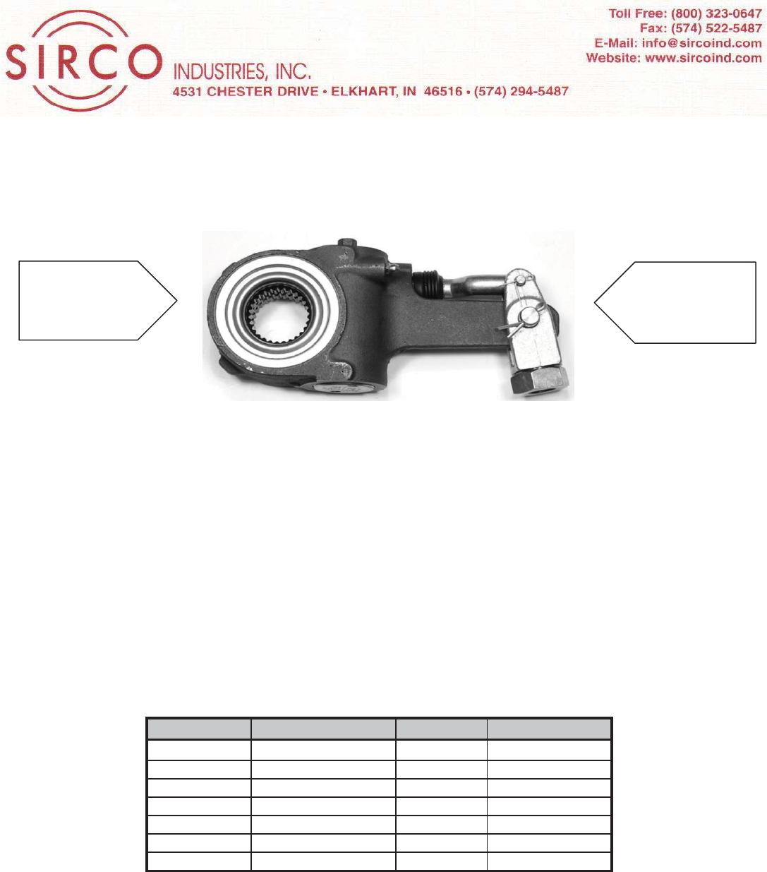 SIRCO BENDIX SPLINE ARM LENGTH