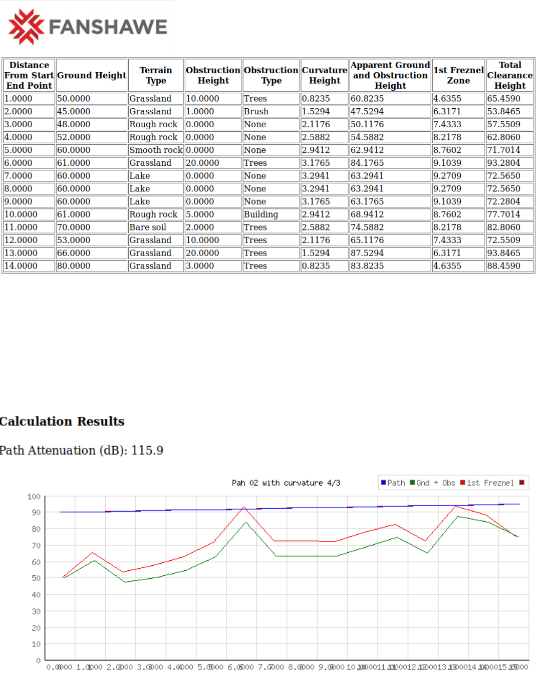curvature on ground height along a microwave path and compute the First Freznel