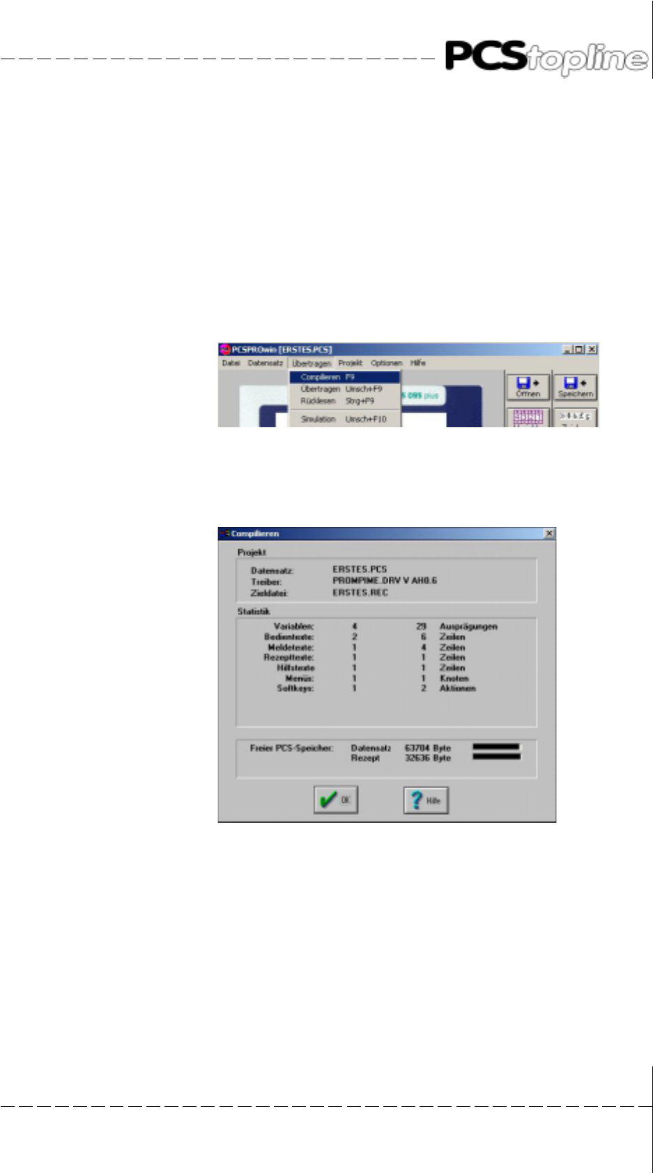 Nach dem Sie Ihr Projekt gespeichert und erfolgreich compiliert haben,