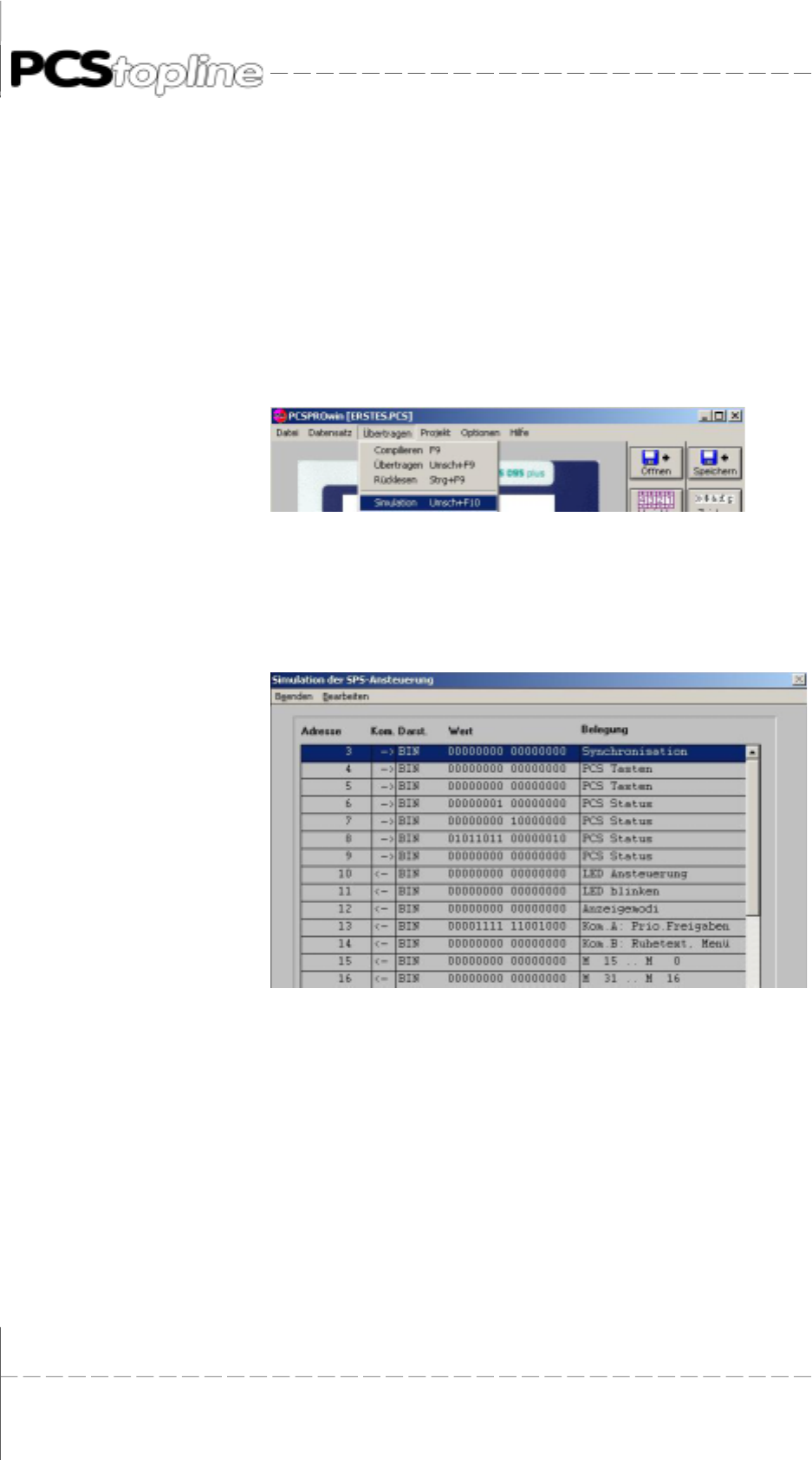 Die Ankopplung an eine Steuerung kann in der PCSPROWIN simuliert