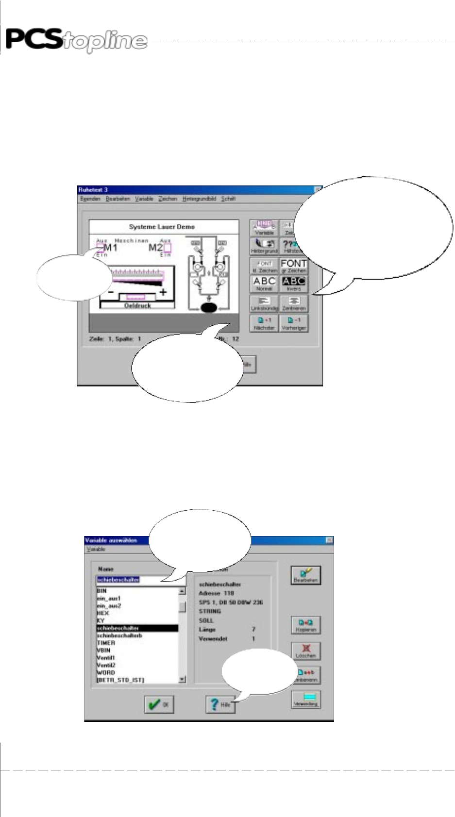 die interne Variablen [SOFTKEYZEILE_1] und [SOFTKEYZEILE_2]