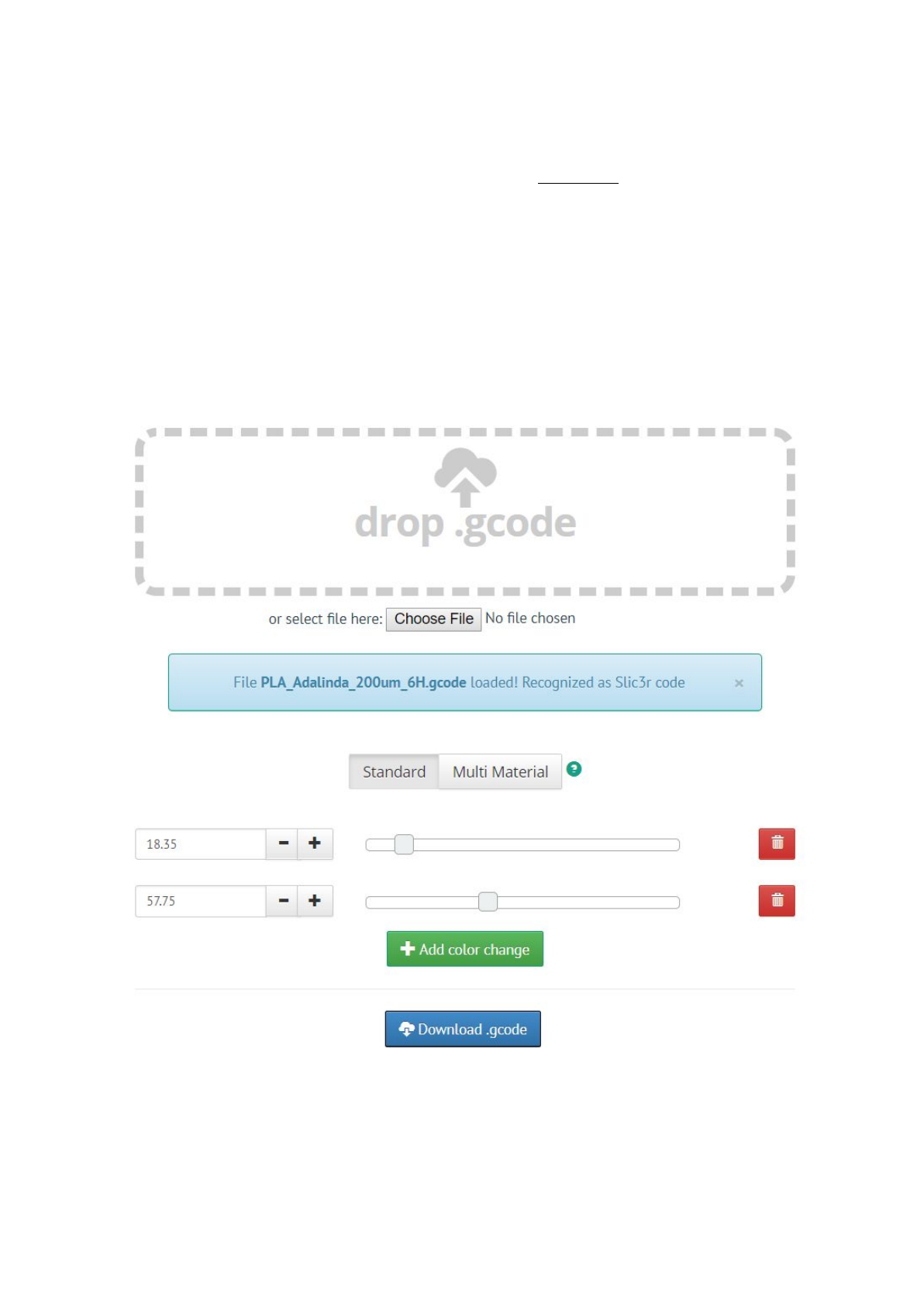 Flow - xx% where you can adjust the filament flow. Pronterface users can enter the value