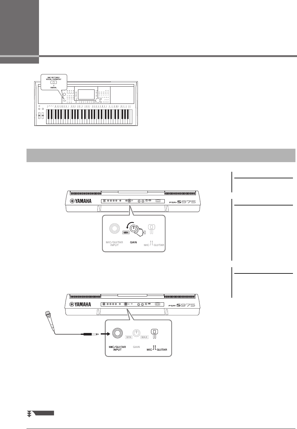 - Microphone/Guitar Input – Using a Microphone or Guitar with the Instrument –