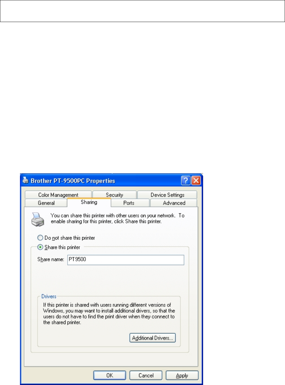 The procedure for using the printer sharing feature in Microsoft Windows to share the PT-9500pc is