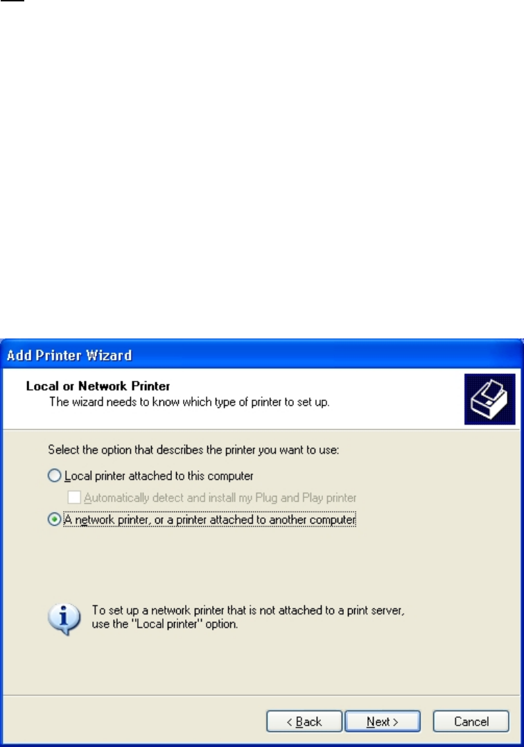 Select “A network printer, or a printer attached to another computer”, and then click the Next