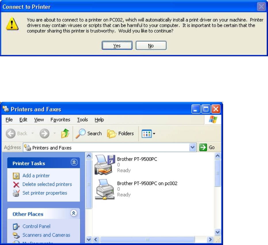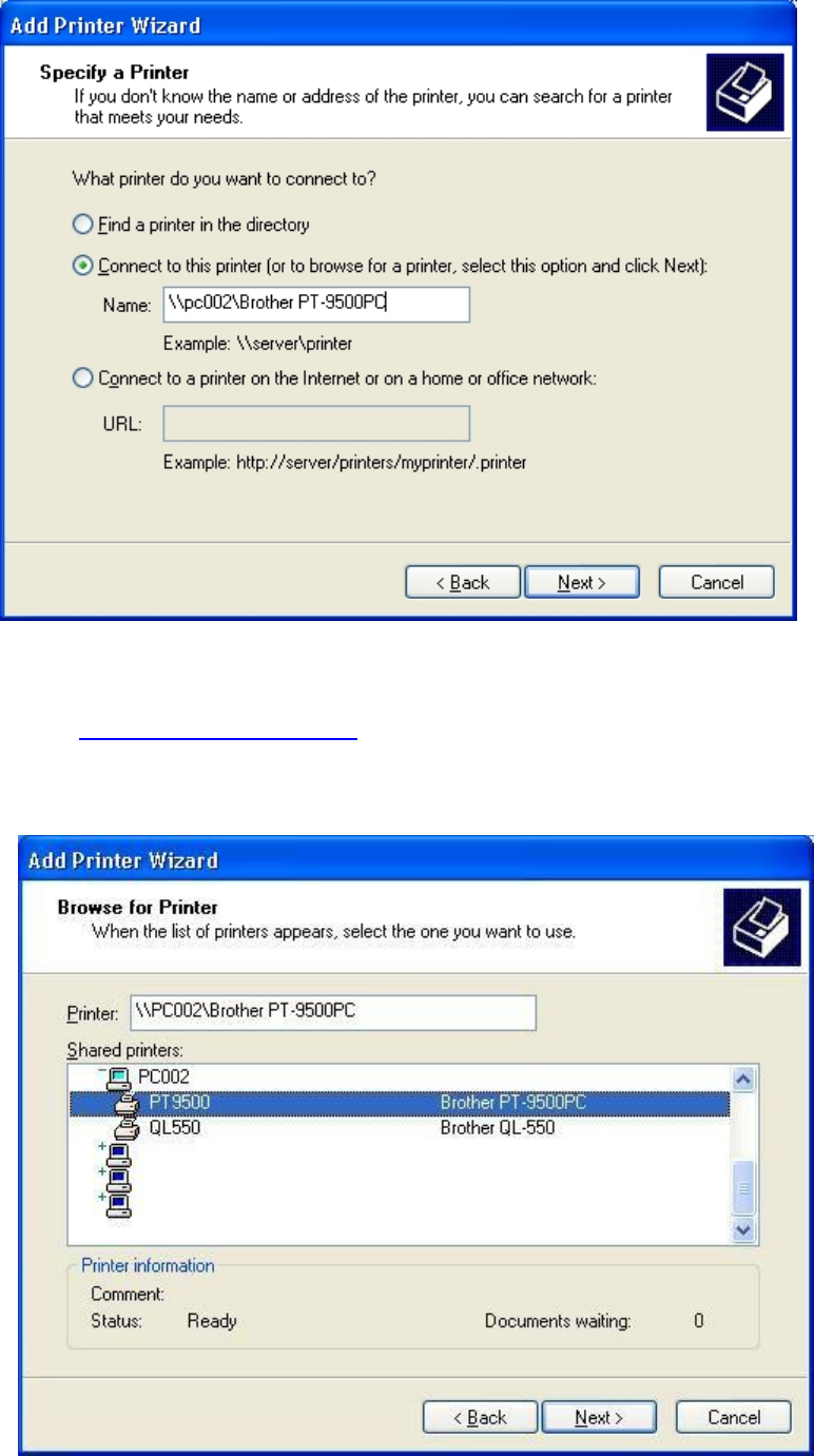 Select the shared printer(“Brother PT-9500PC” for this example), and then click the Next button.