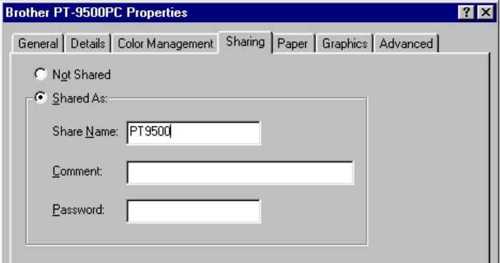 In the “Share name” box, type in a name that can easily be recognized on the network. (“PT9500”